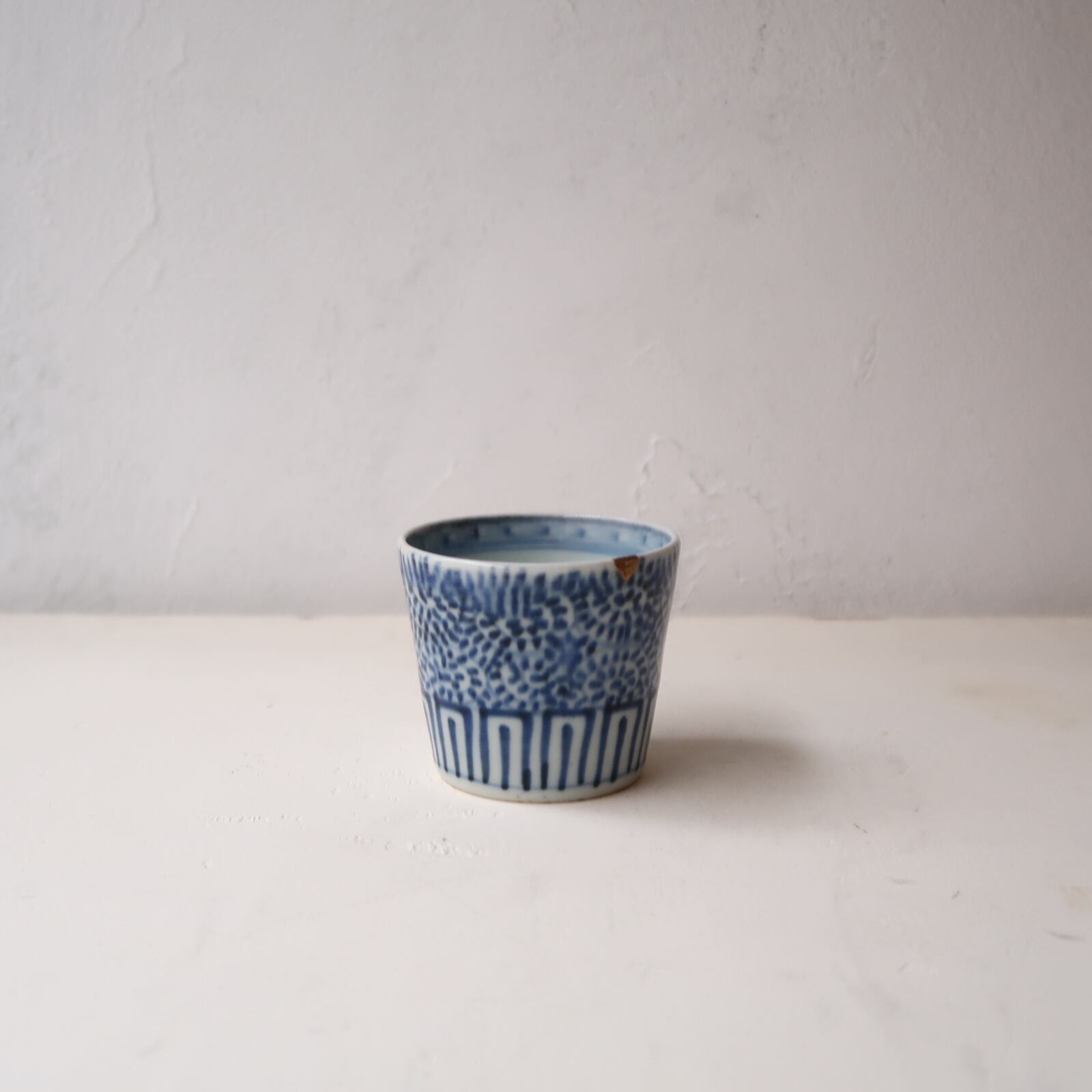 スッとしたフォルムときれいな素地。絵柄は蛸唐草が省略されたもの。欠けていた部分には金継ぎしました。