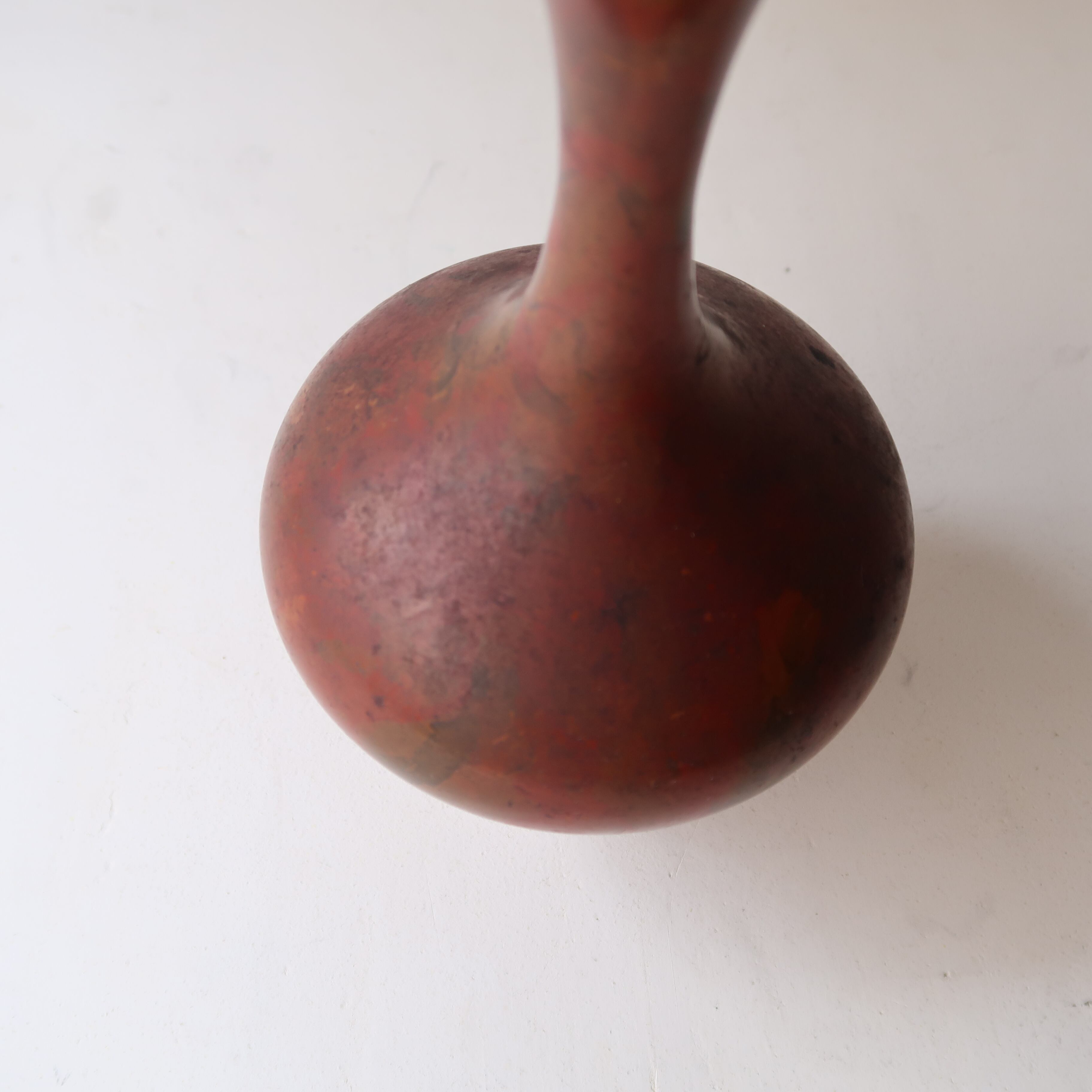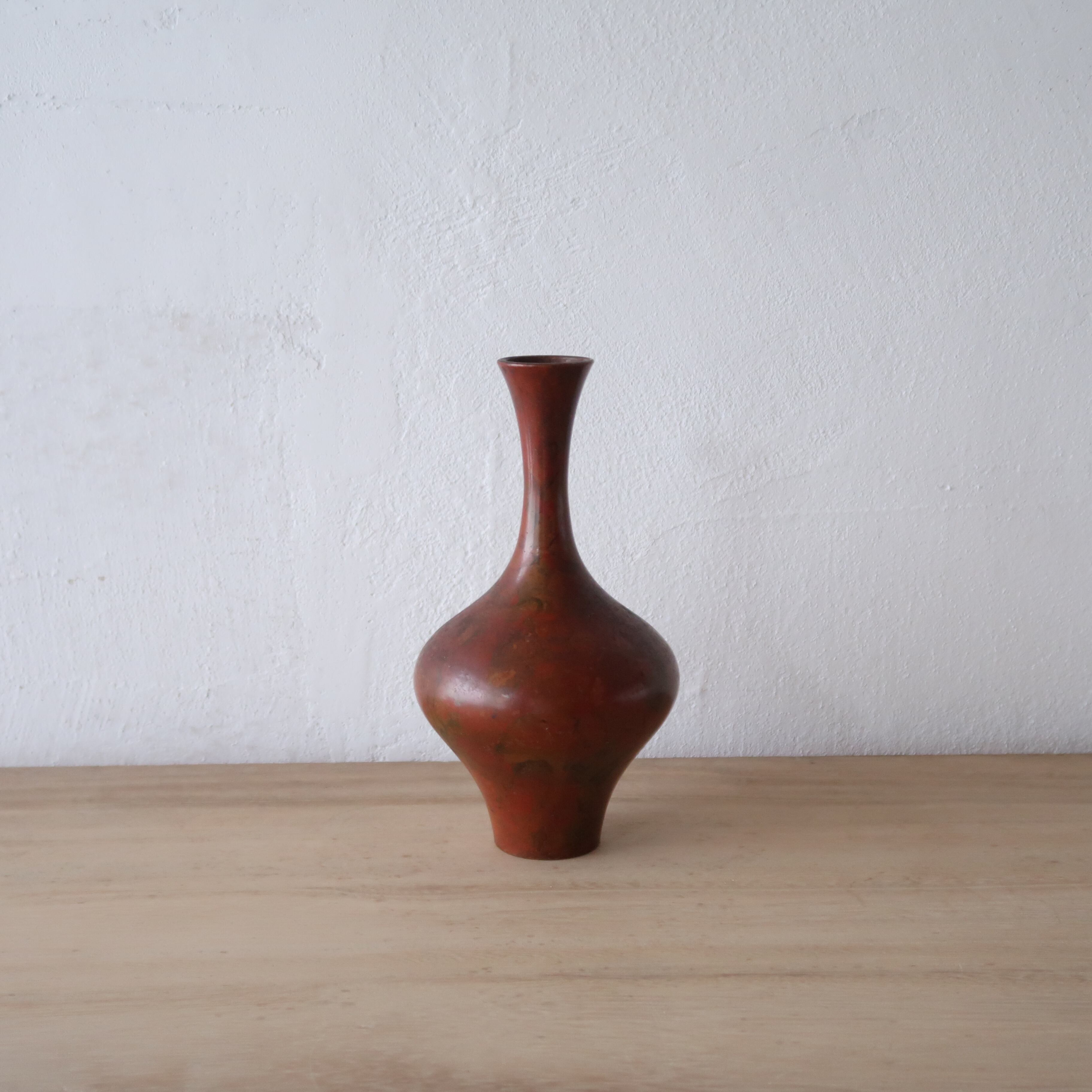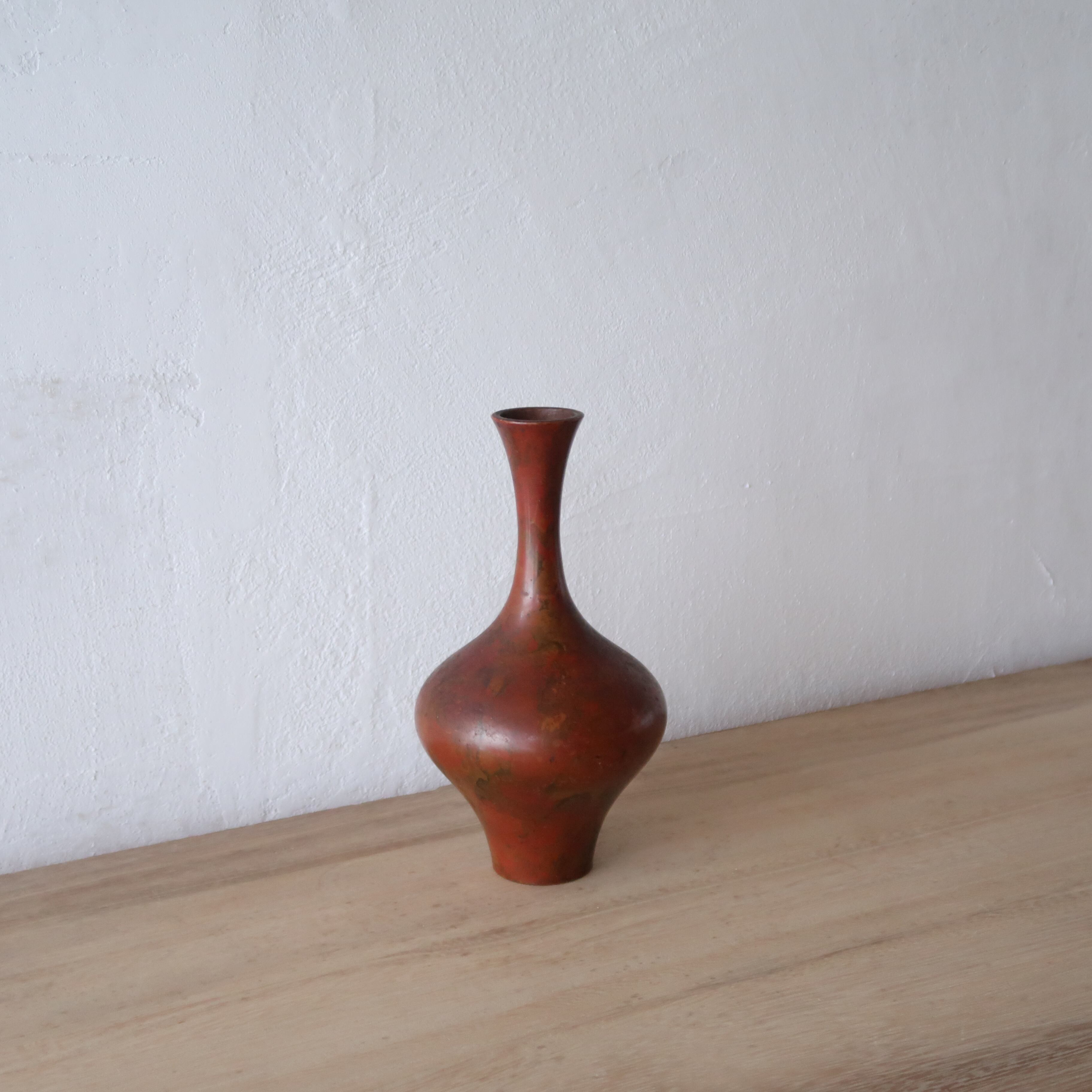 首がほそくて長い、壺型のフォルムの花瓶。