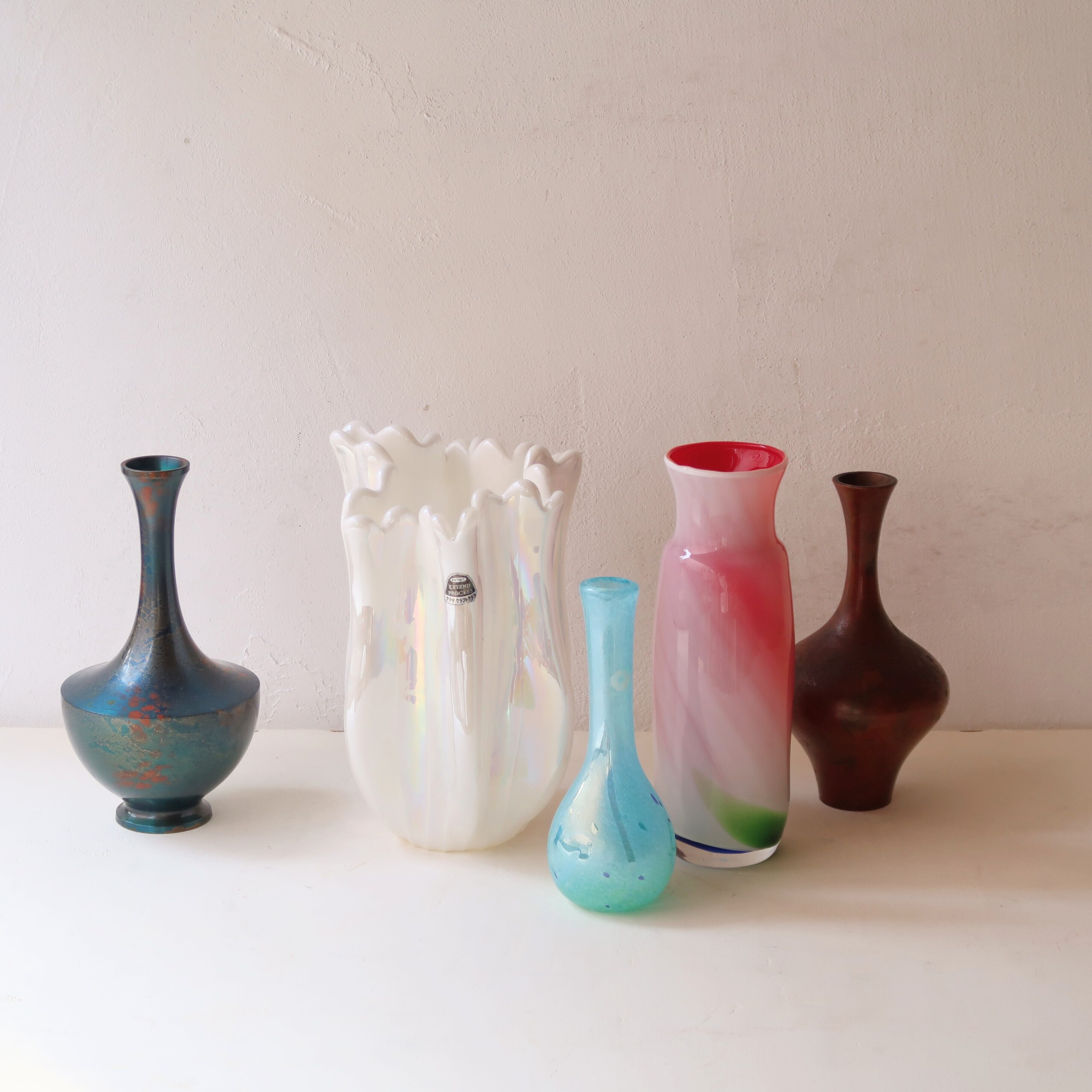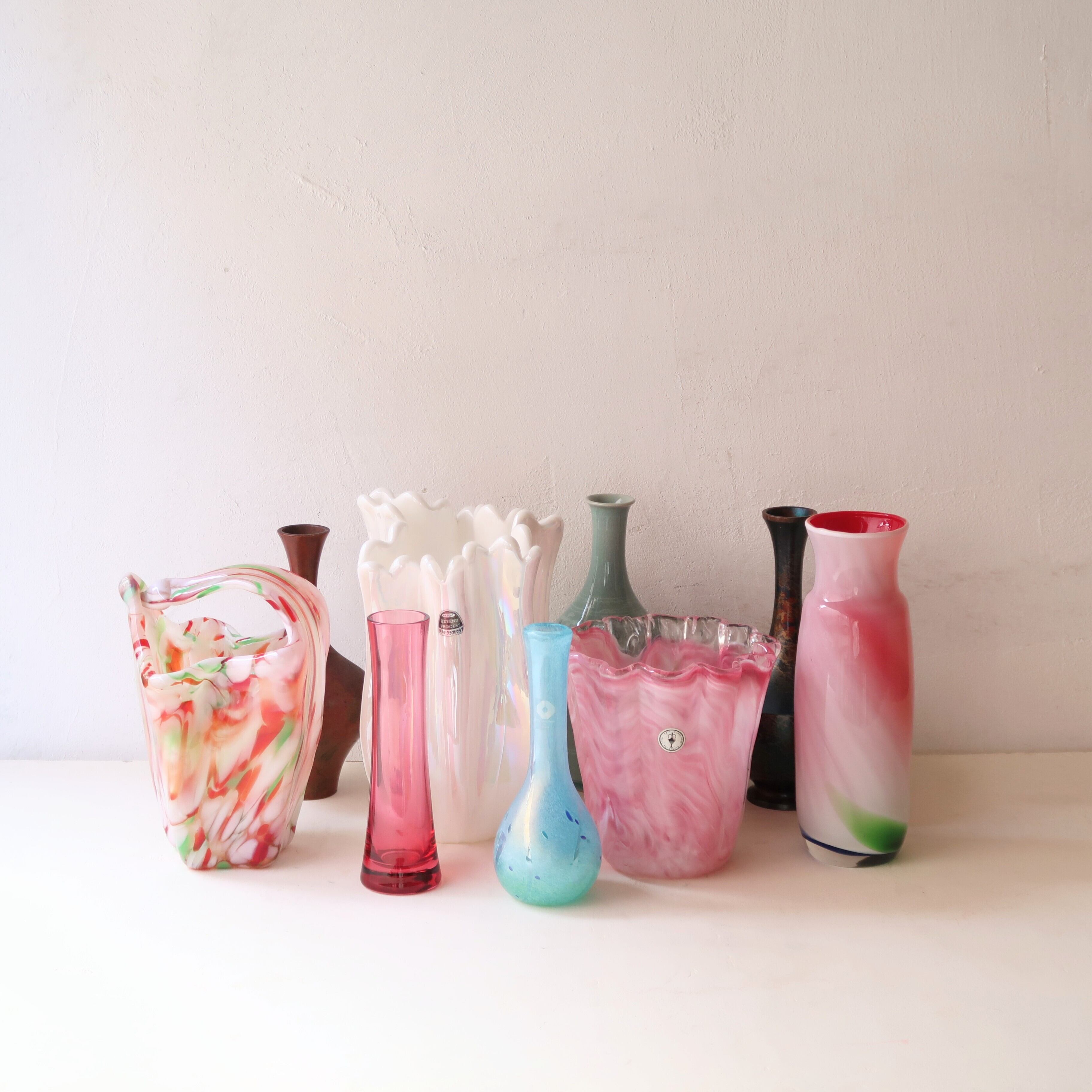 □L…3輪以上たっぷり生けられる。高さ約25cm前後、重量感あるガラスの花瓶など。このあたりら、すこし大きいと感じるかも。インテリアとしても。