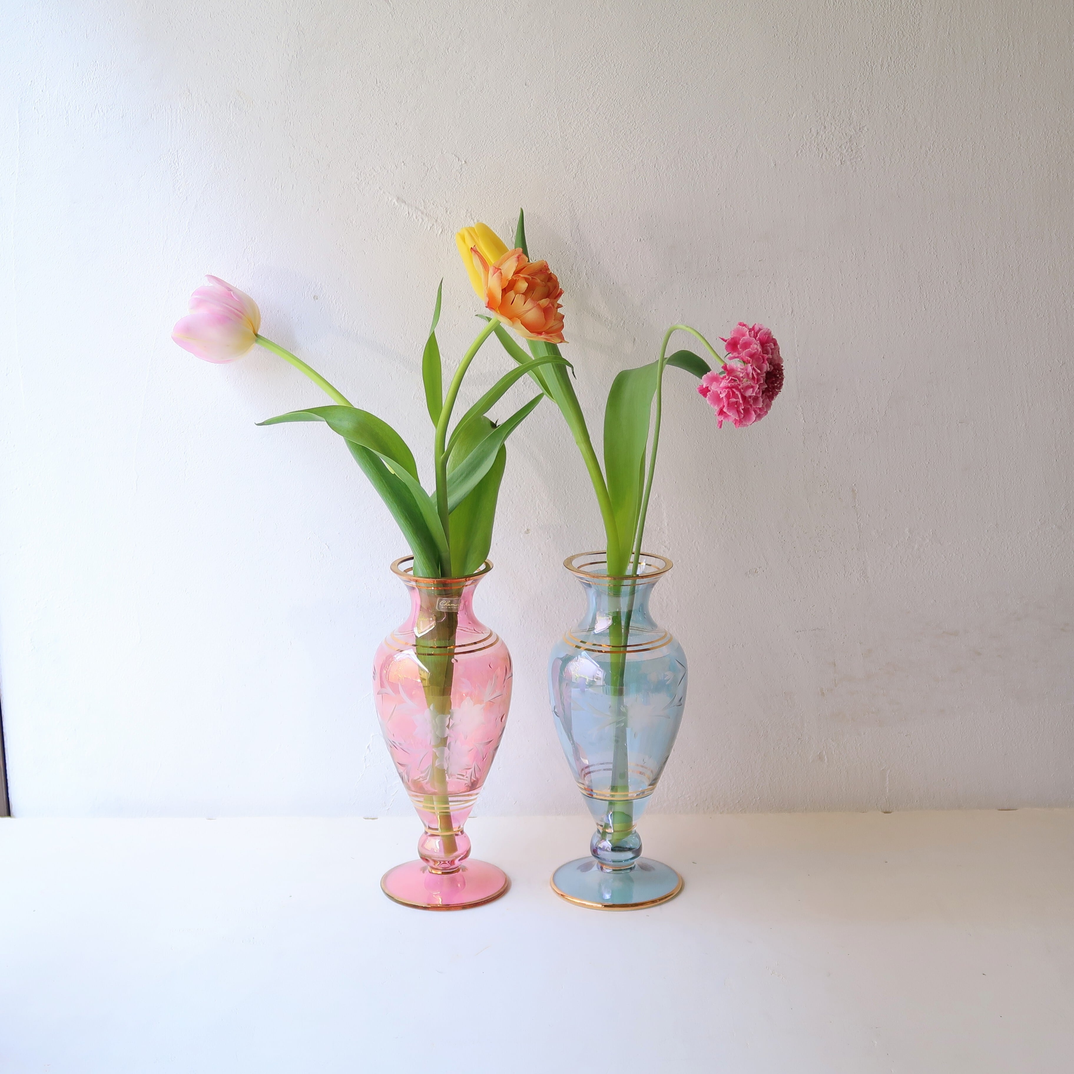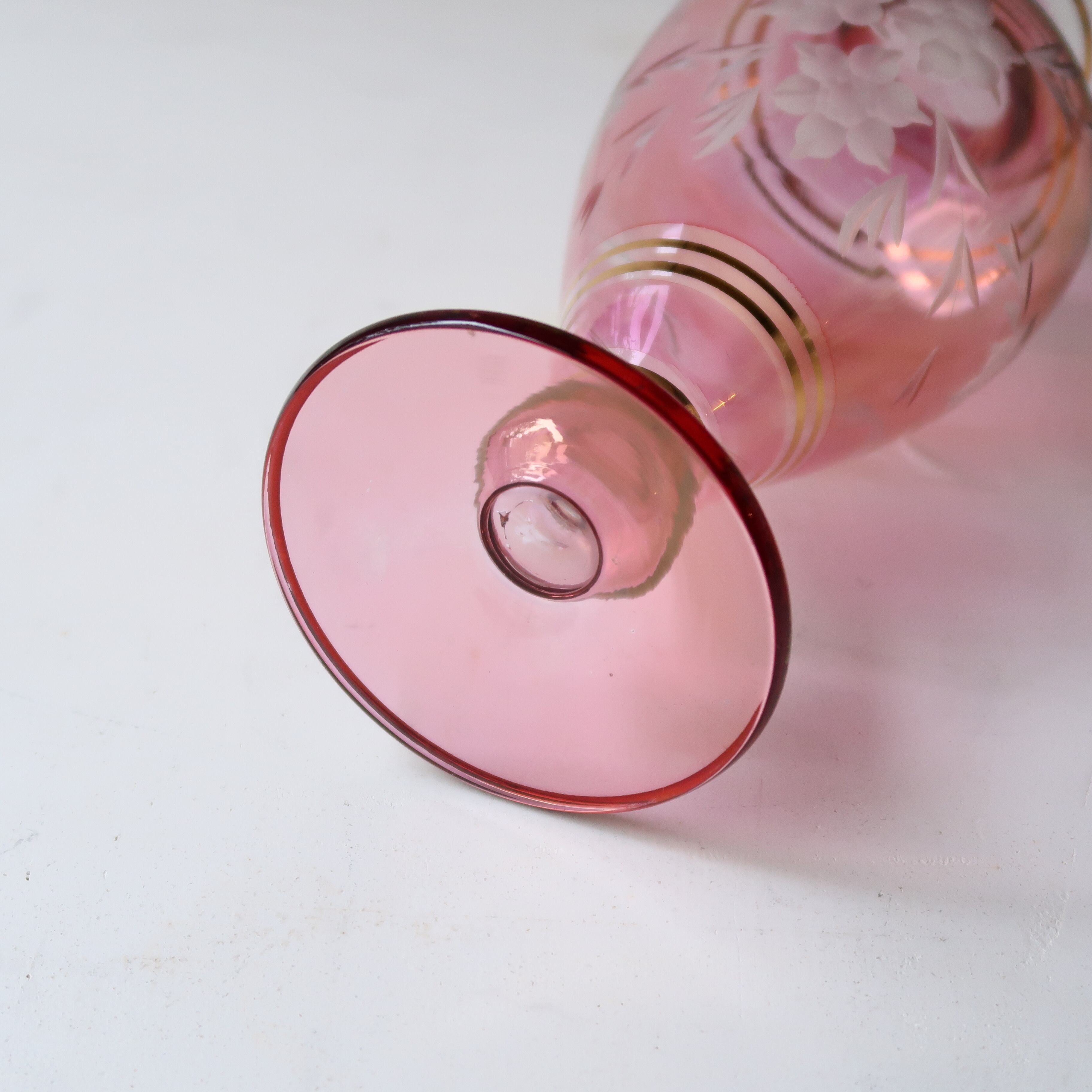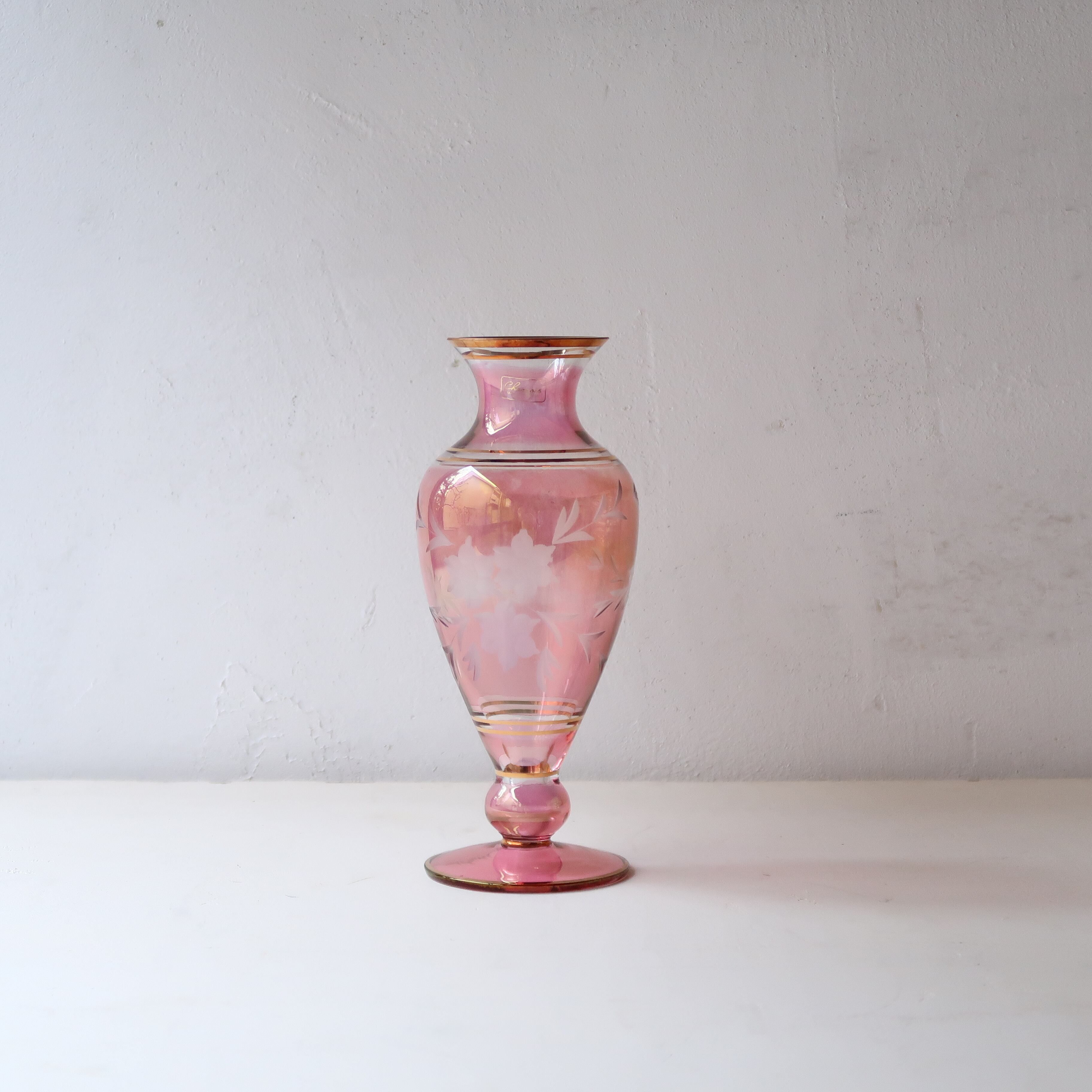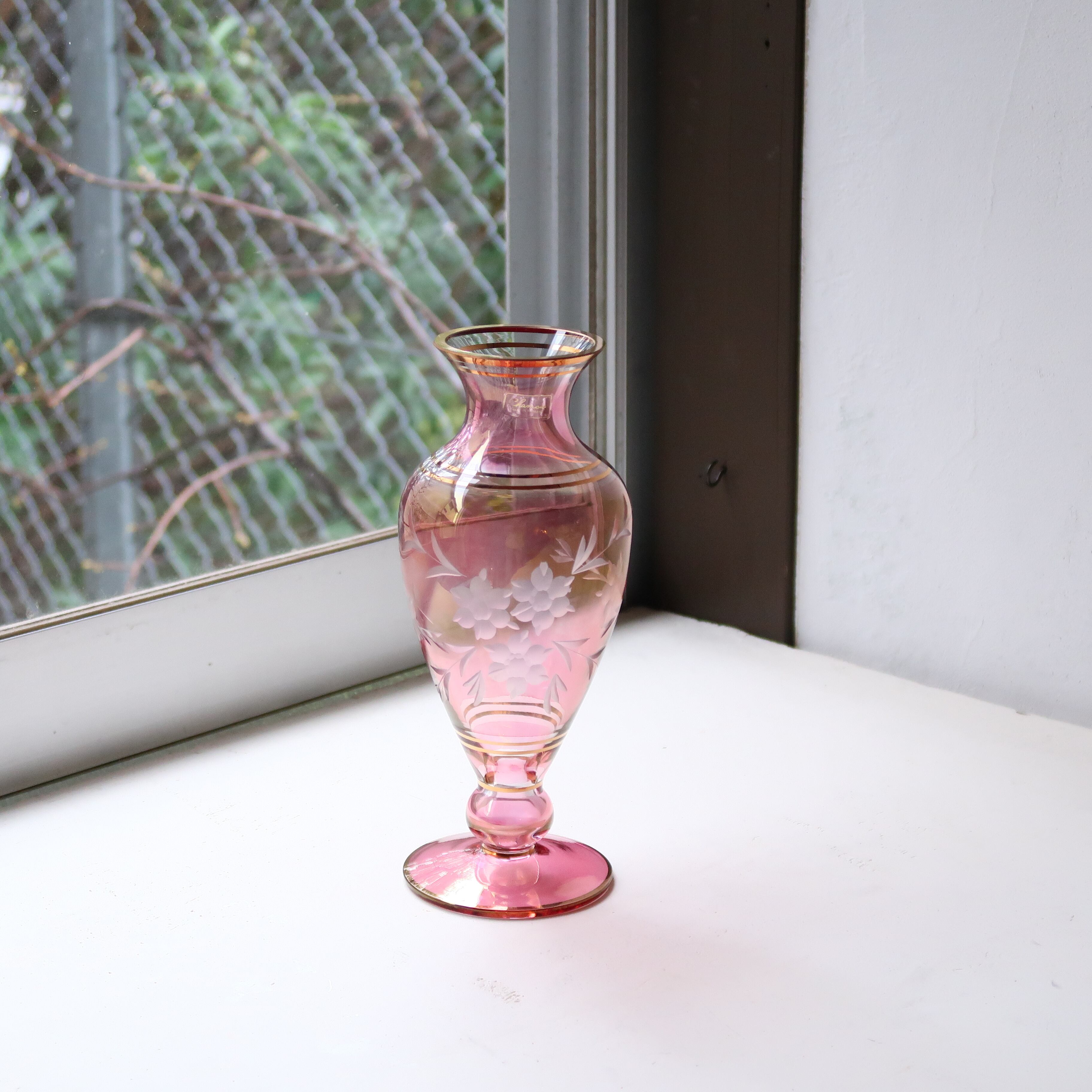 切子と金彩の花瓶-ピンク
