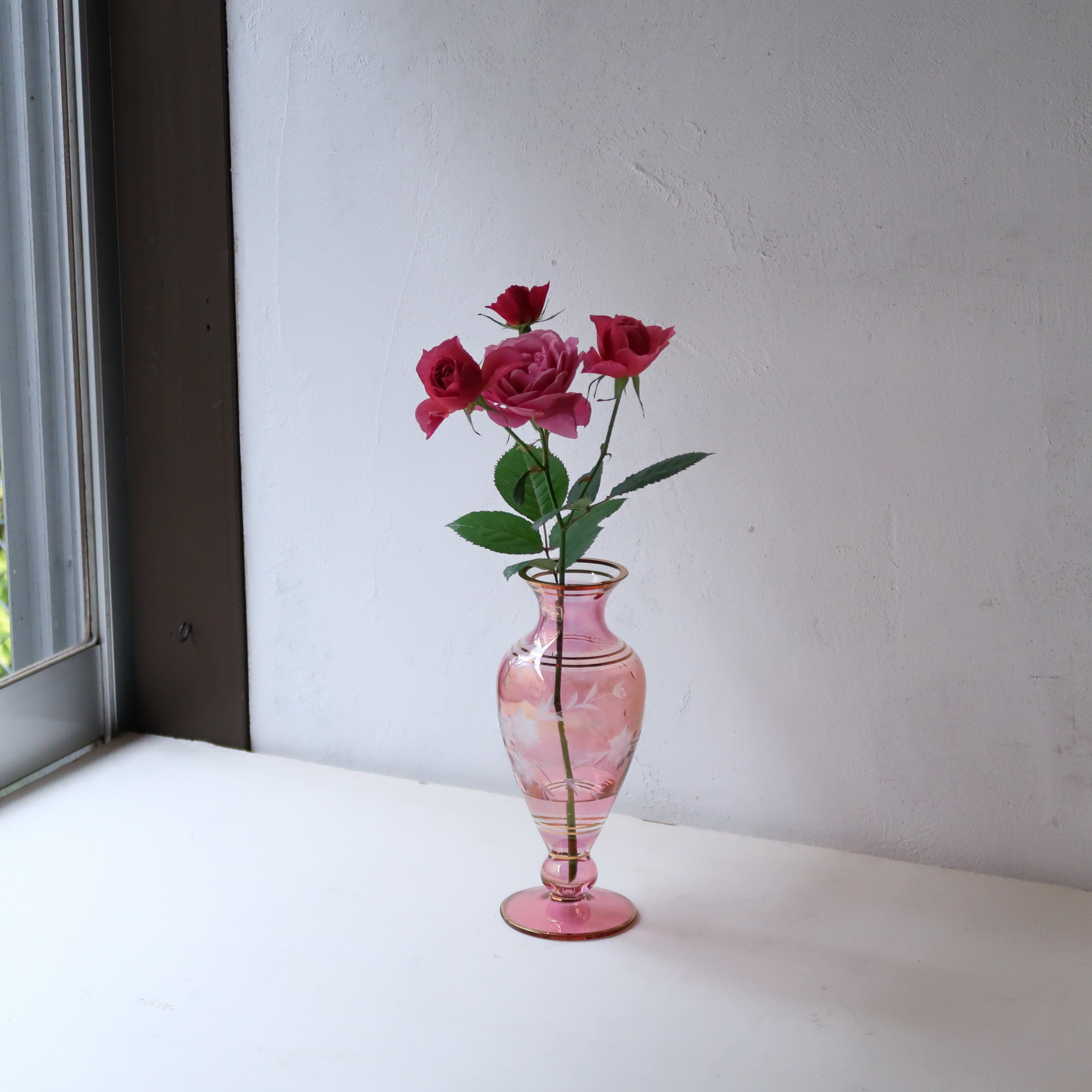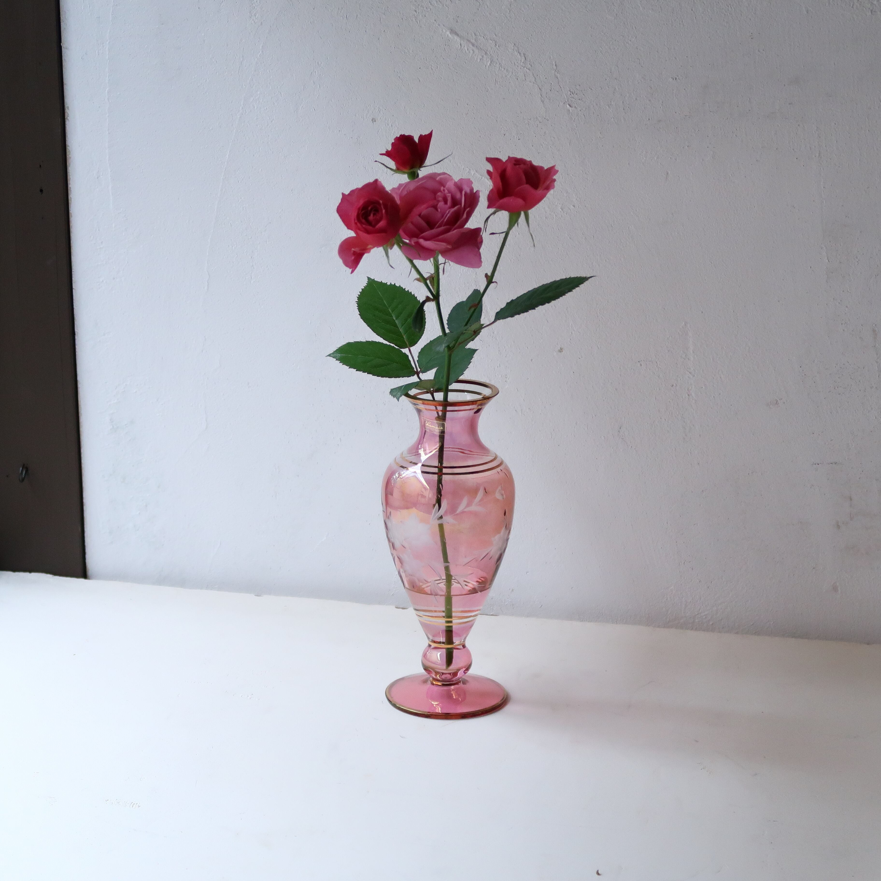 上品な花瓶なので、ちいさな薔薇もよく合いました。