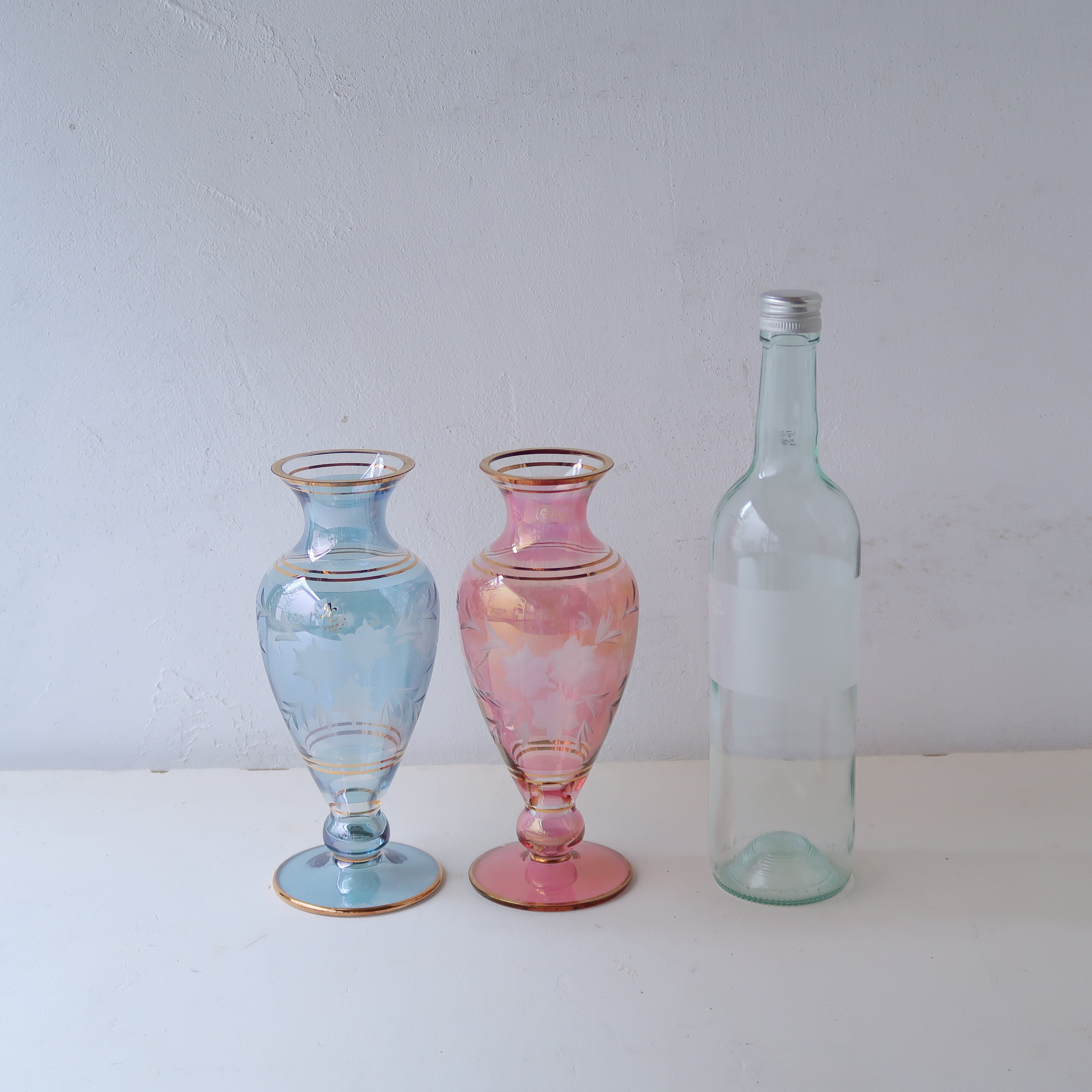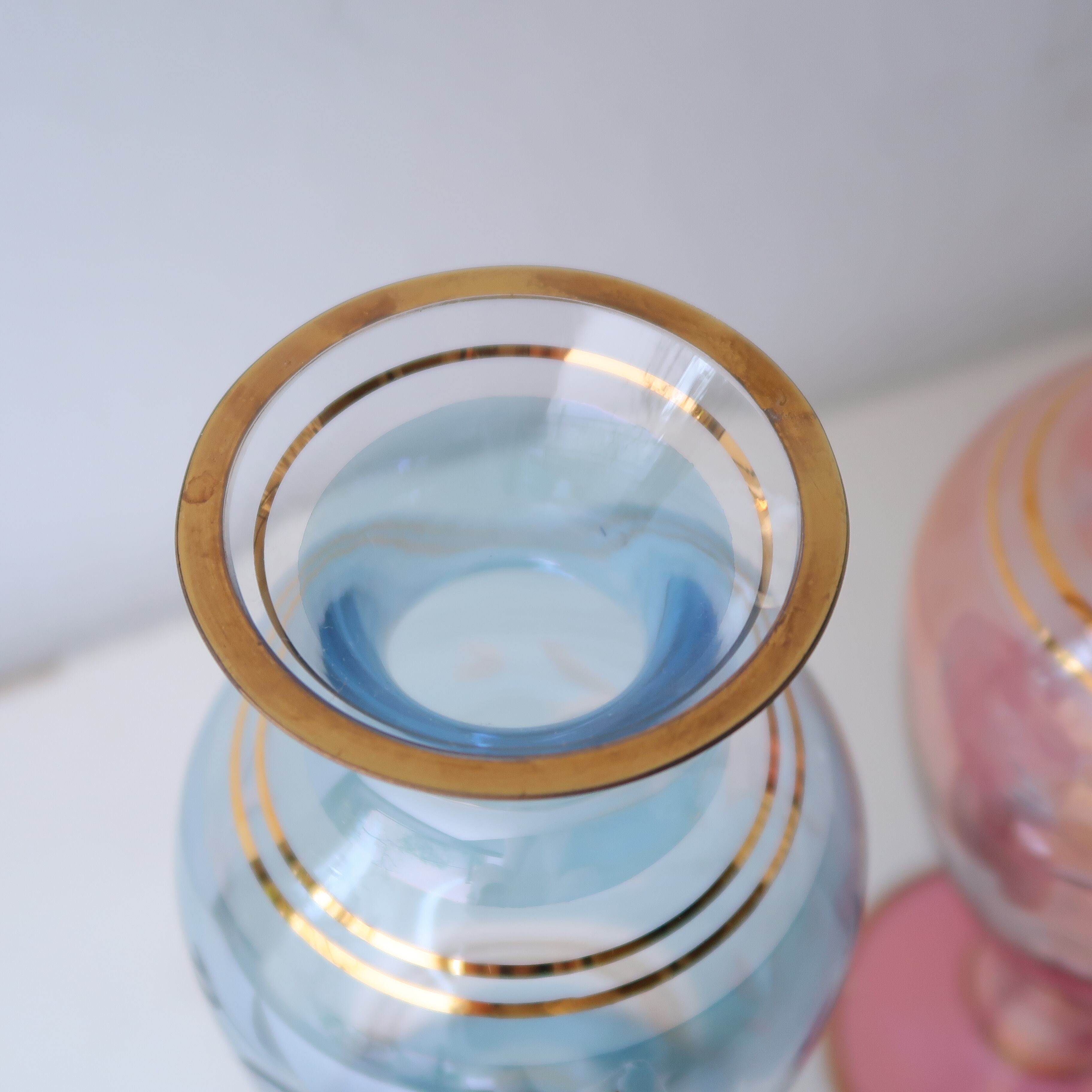 切子と金彩の花瓶-スカイブルー