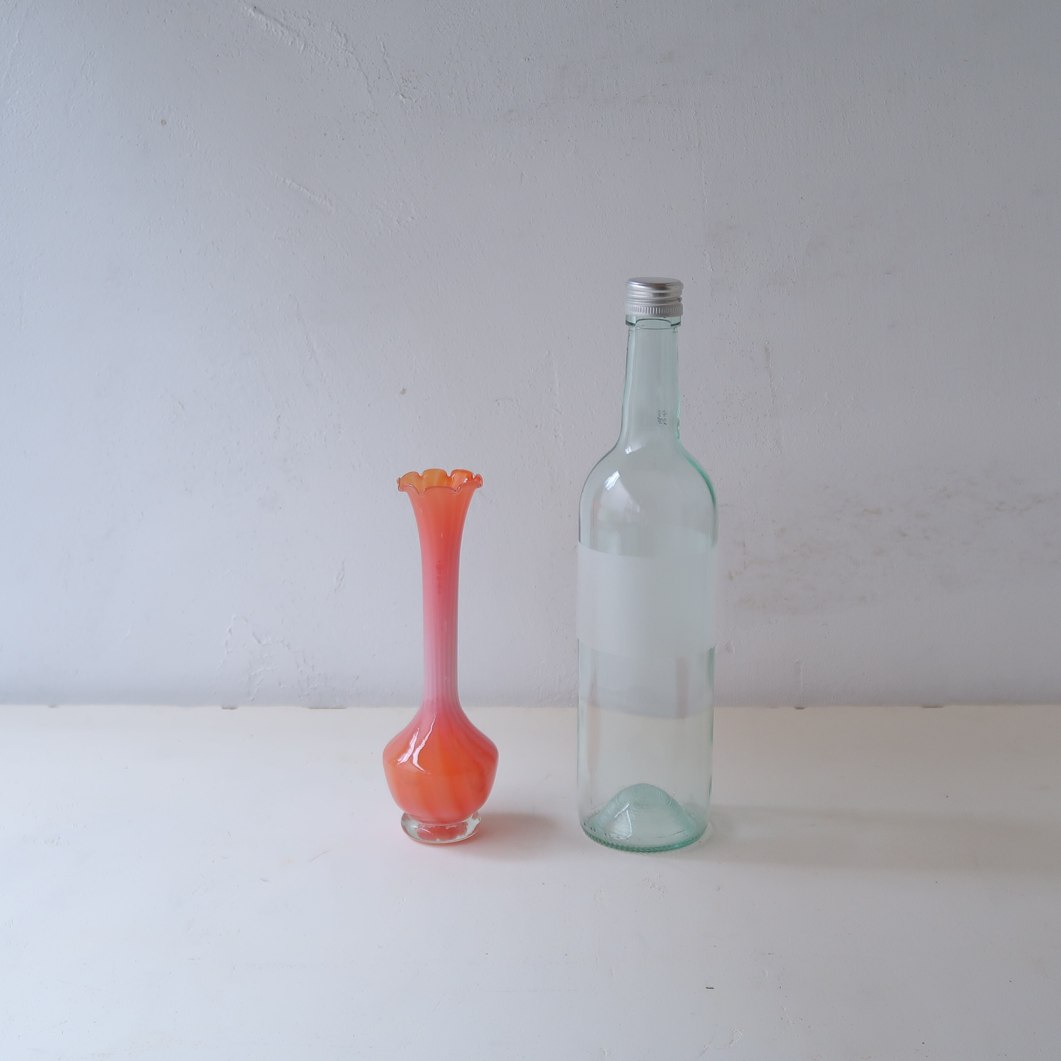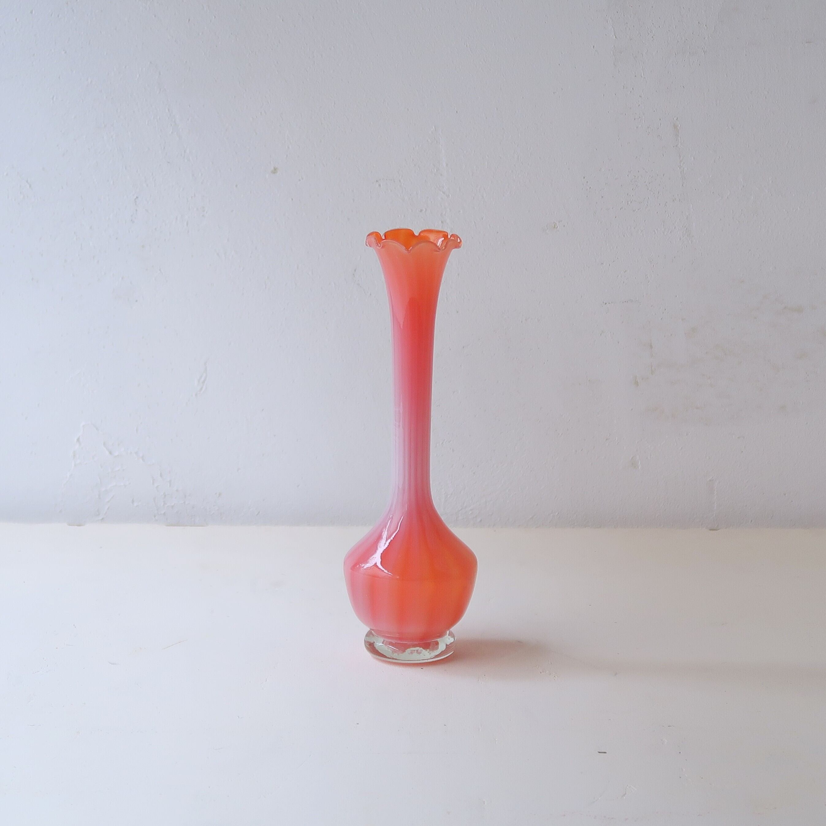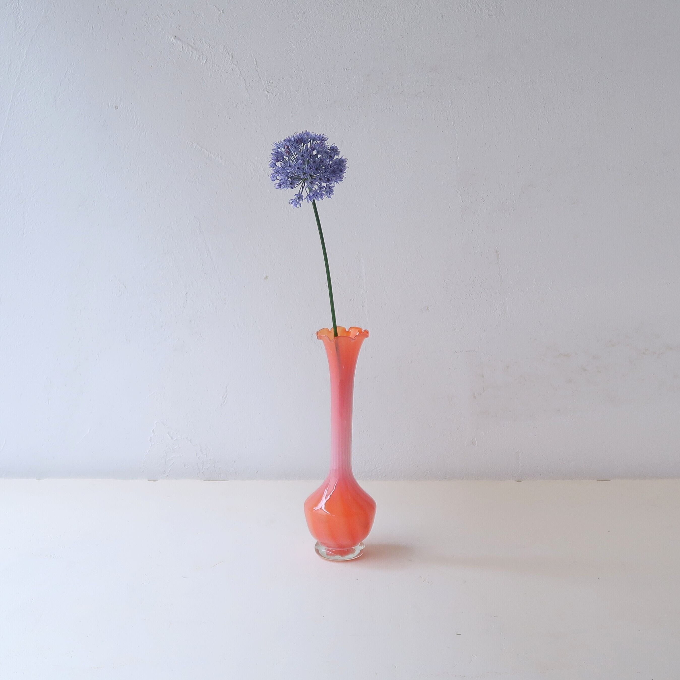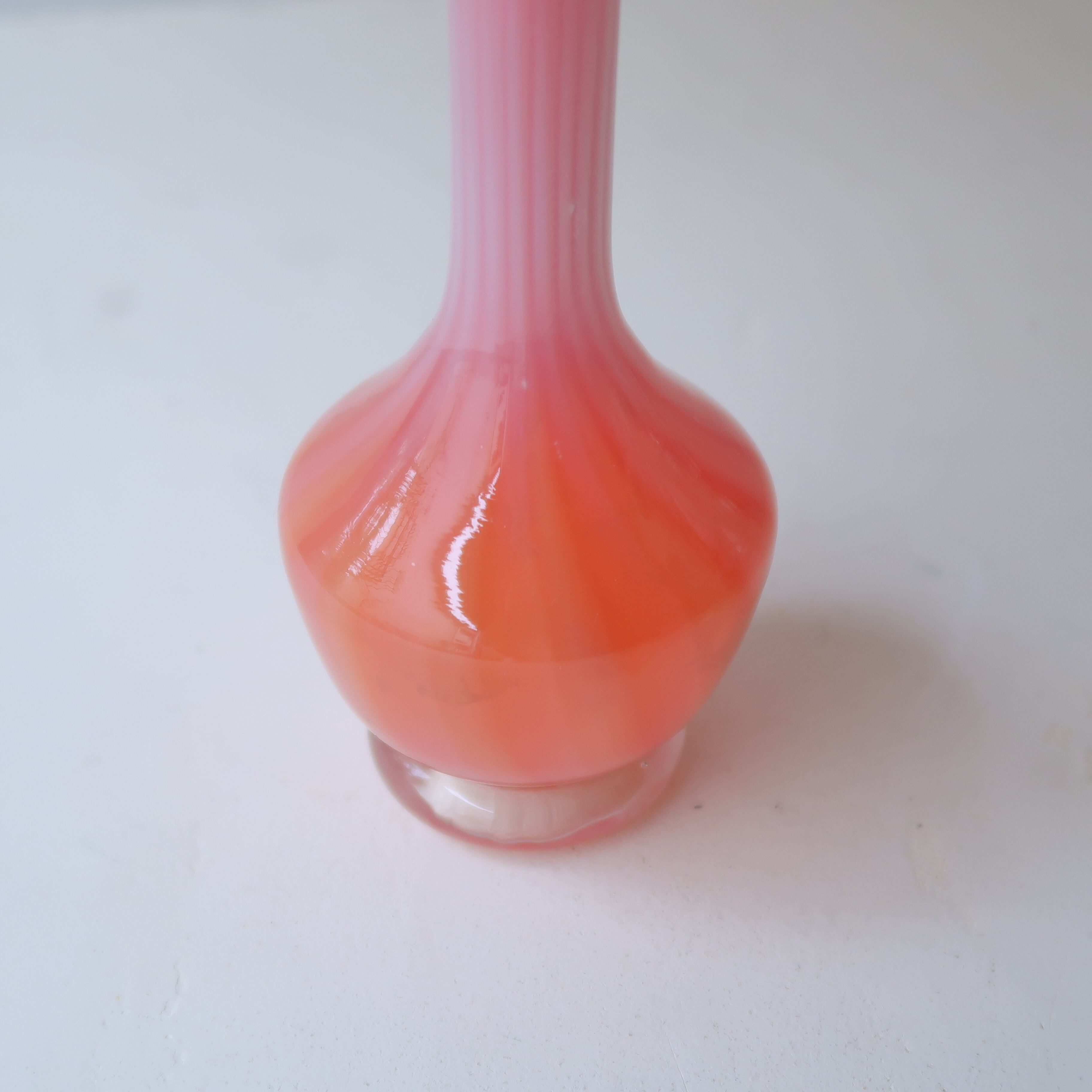 内側がオレンジ、外側はうっすらとホワイト。ストライプが透けてピンクやオレンジに、言ってみればコーラルピンクの花瓶。