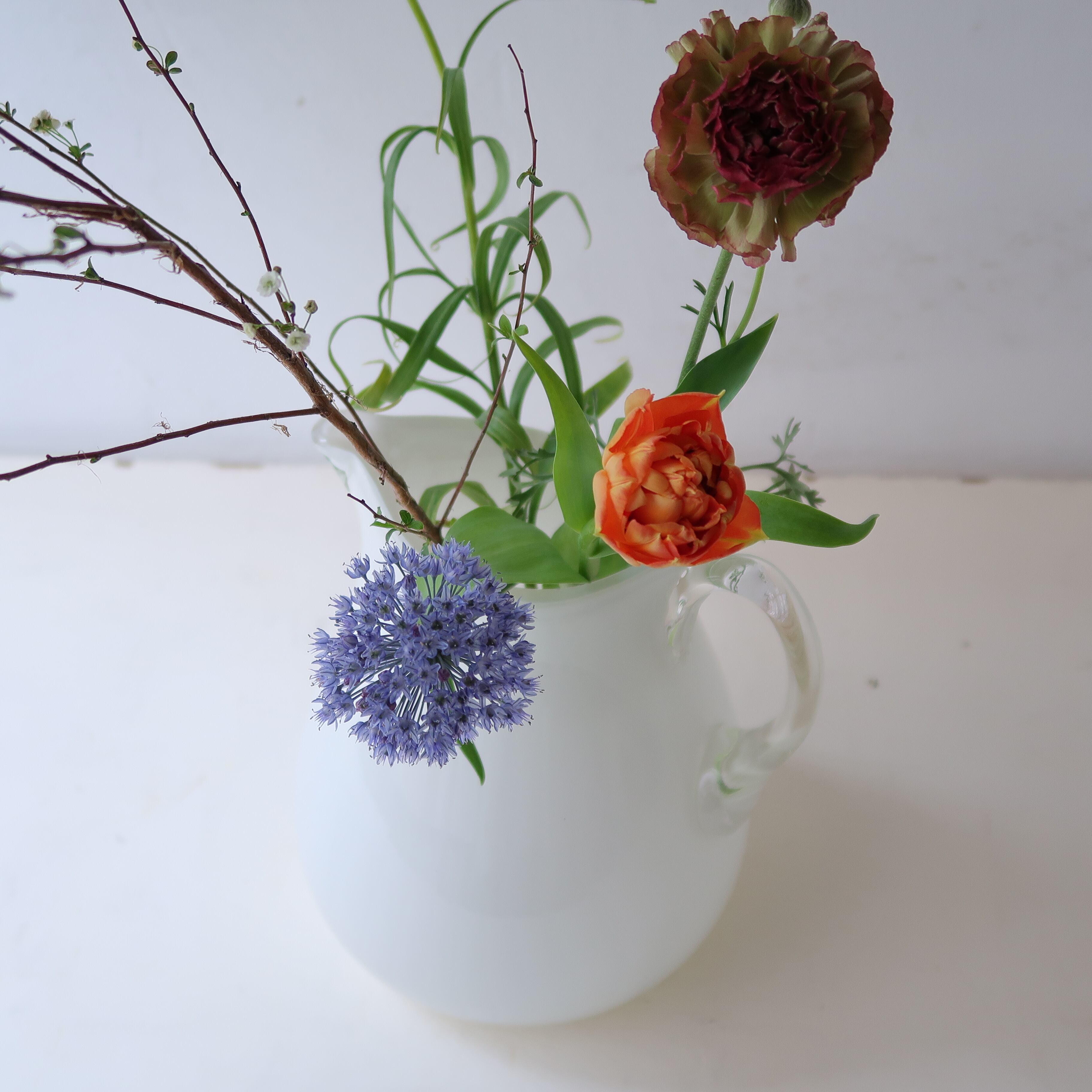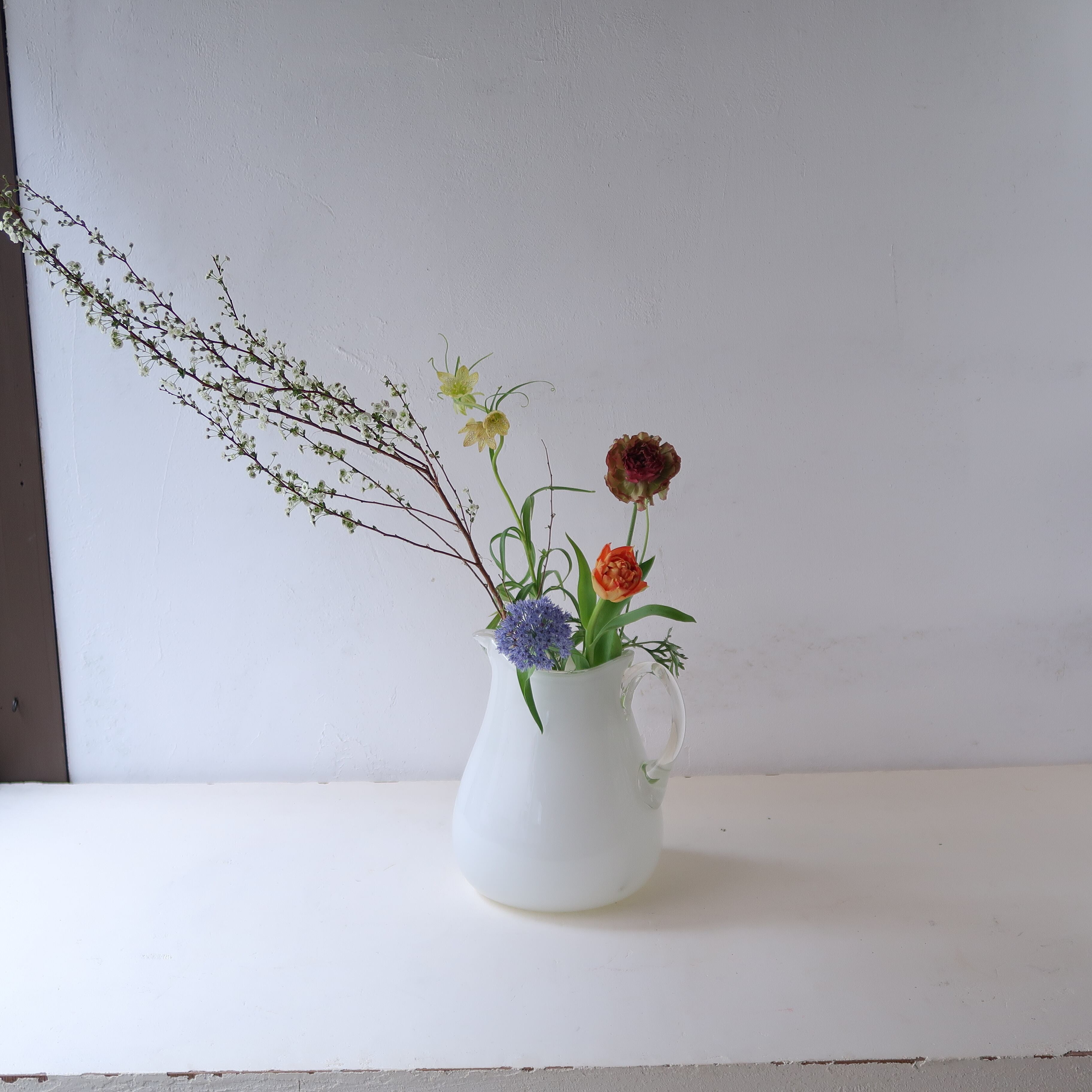 口が大きいので、お花を生けるのにぴったり。もちろん水差しとして使っても。
