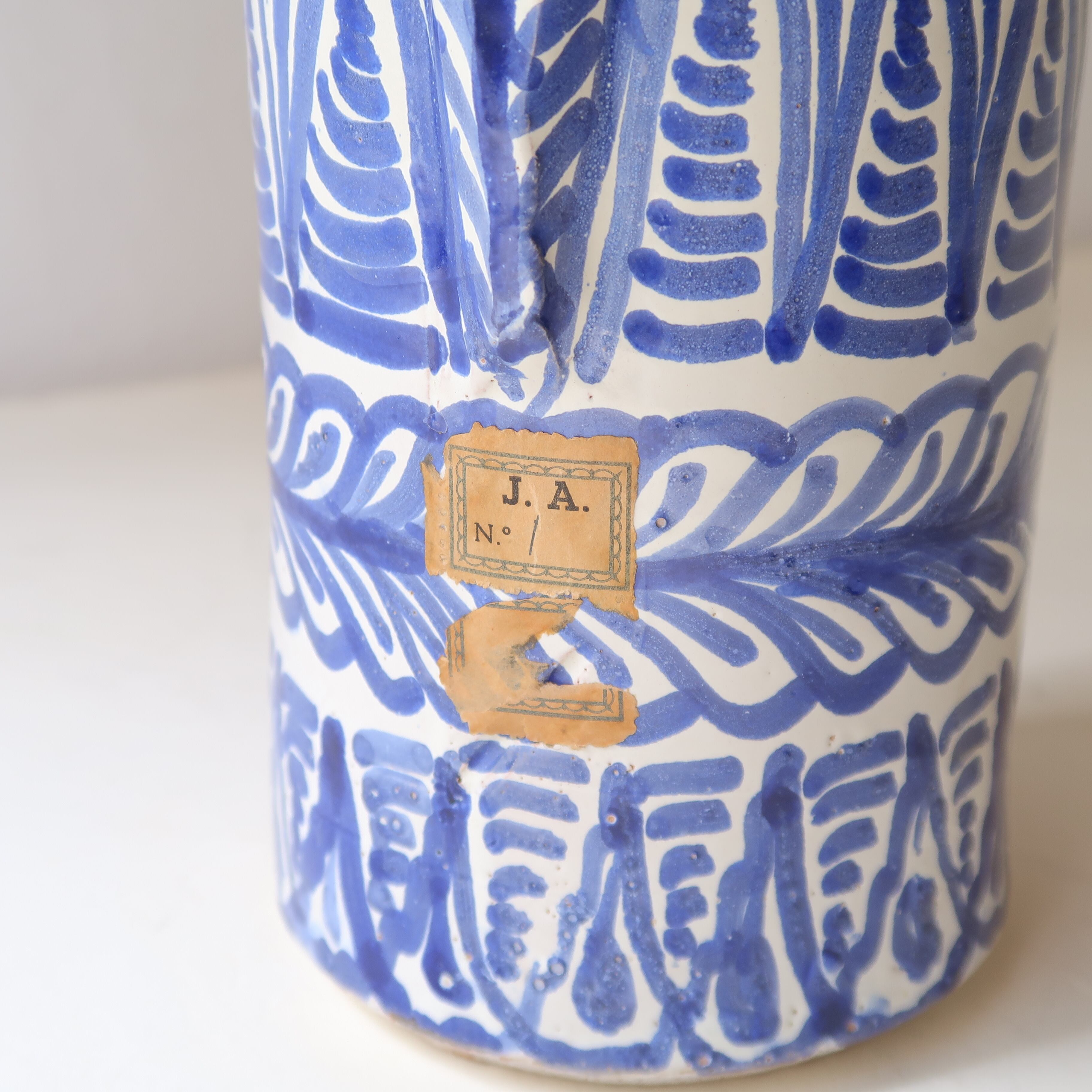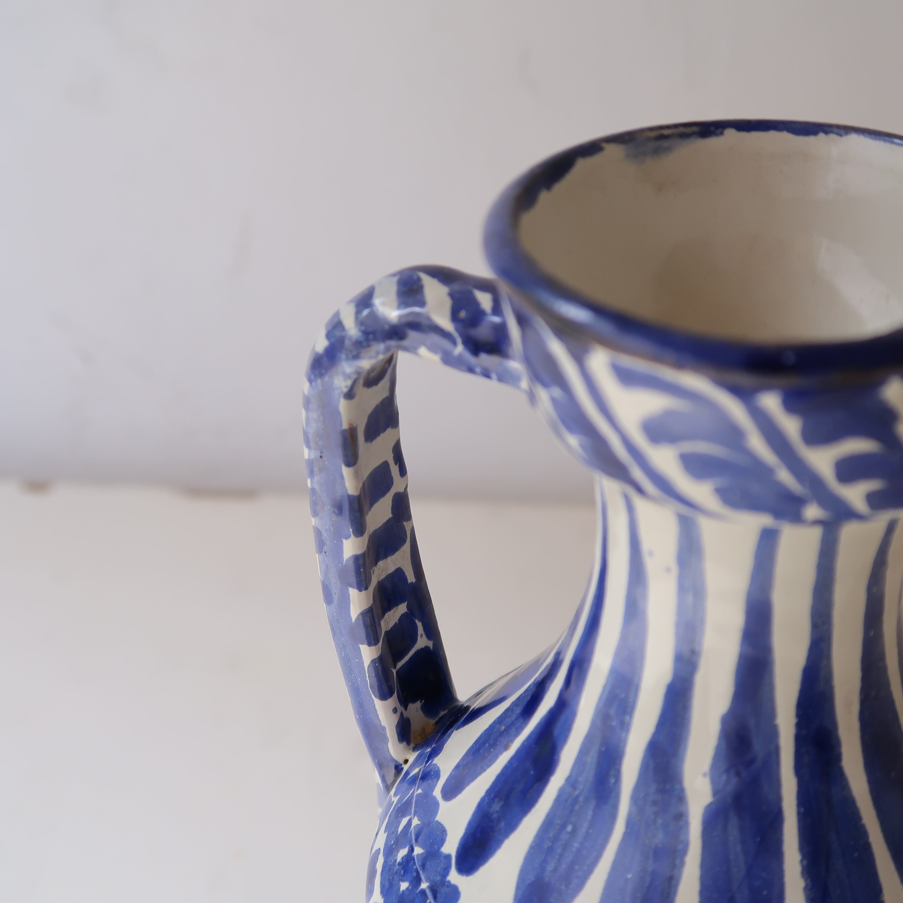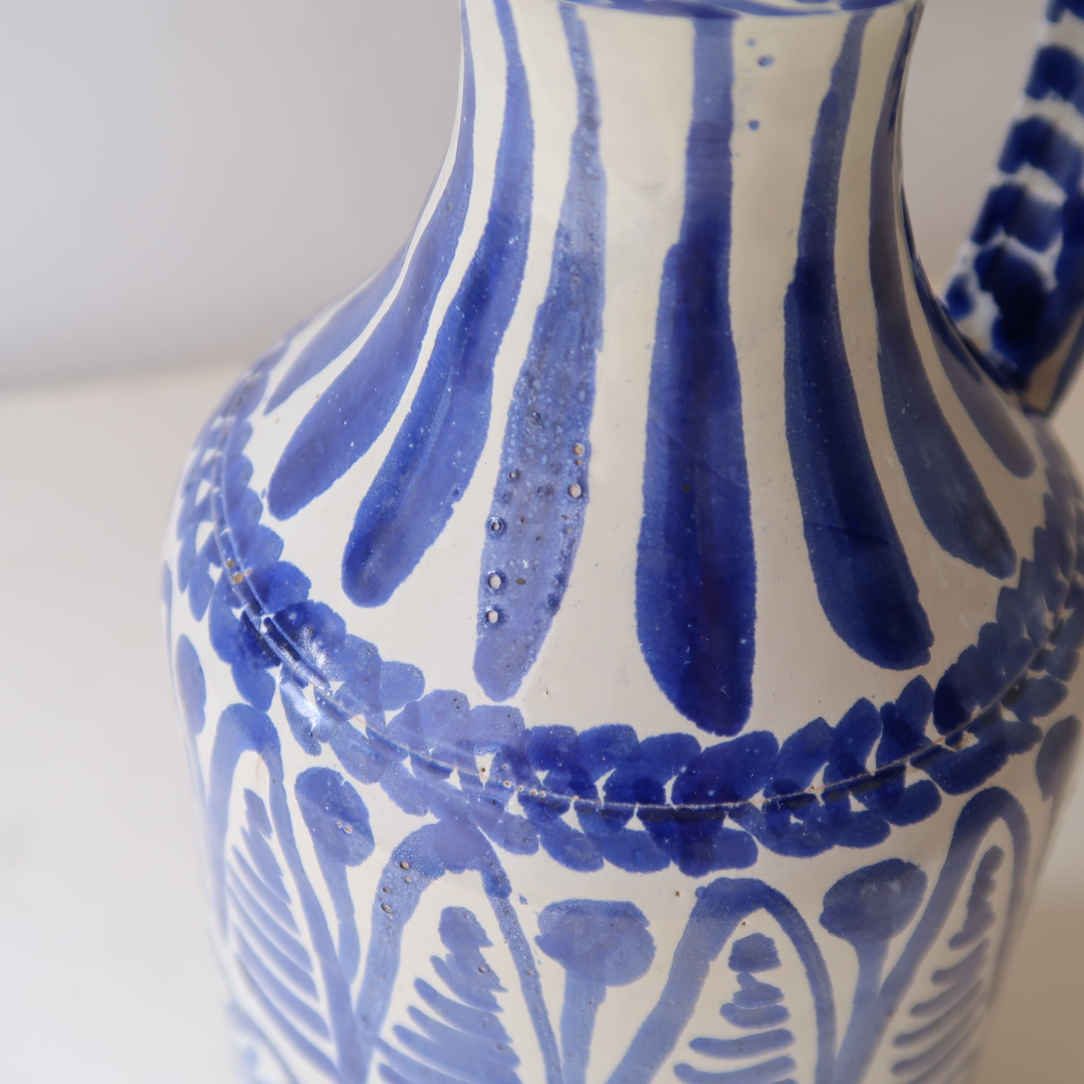 底を見ると、「GRANADA ESPANA」の文字。スペインで作られた陶器の水差しのようです。手作りなのか、表面にはふつふつとした気泡があります。異国情緒を感じつつも、日本の染付のような印象もある花瓶です。