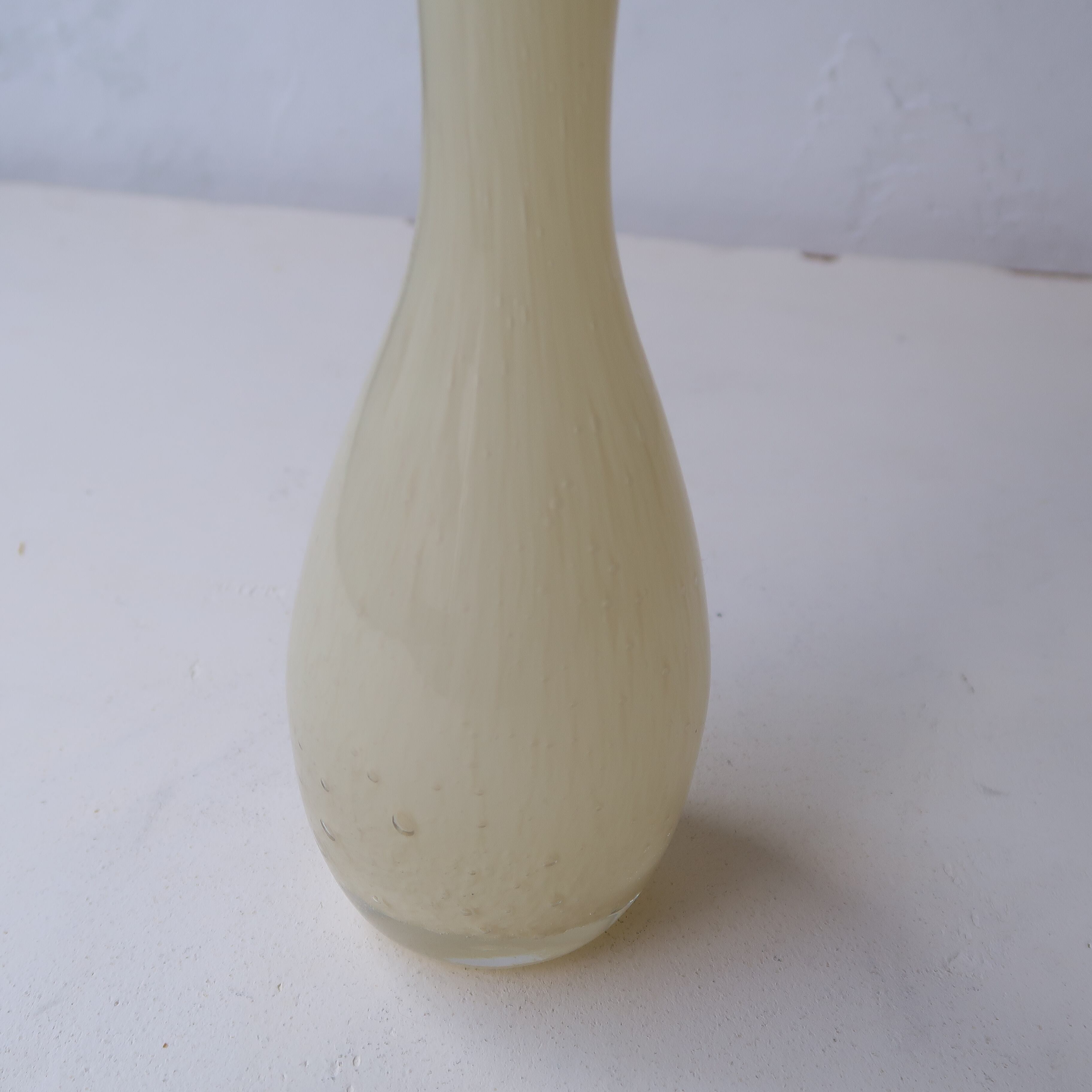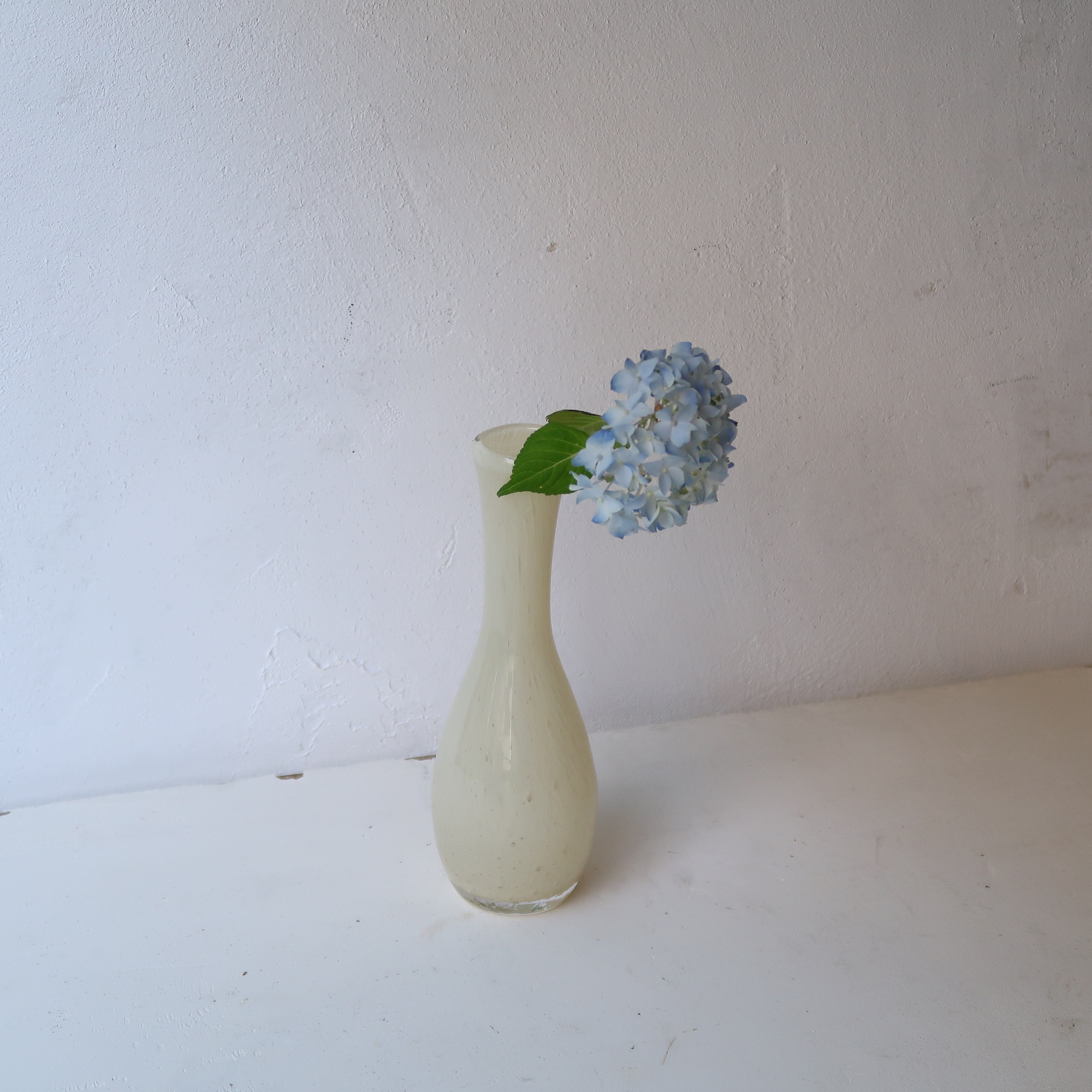 川の流れと泡のような、ぽこぽことした気泡のあるガラスの花瓶。それぞれミルキーな色合いで、流れる水のように動きのある模様に、生命力を感じます。
