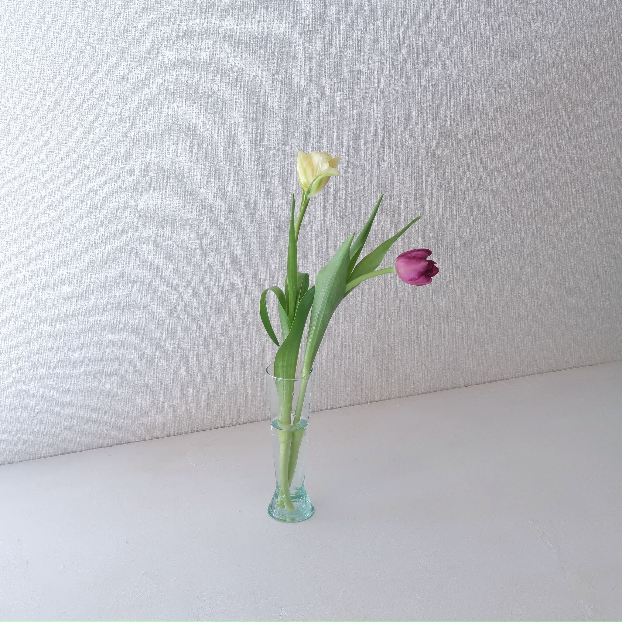 今回入荷したのは、ほそい一輪挿しタイプの花瓶。末広がりで厚みのある土台なので、ほそいフォルムながら安定感があります。枝物や爽やかな色合いのお花もよく似合いそうです。