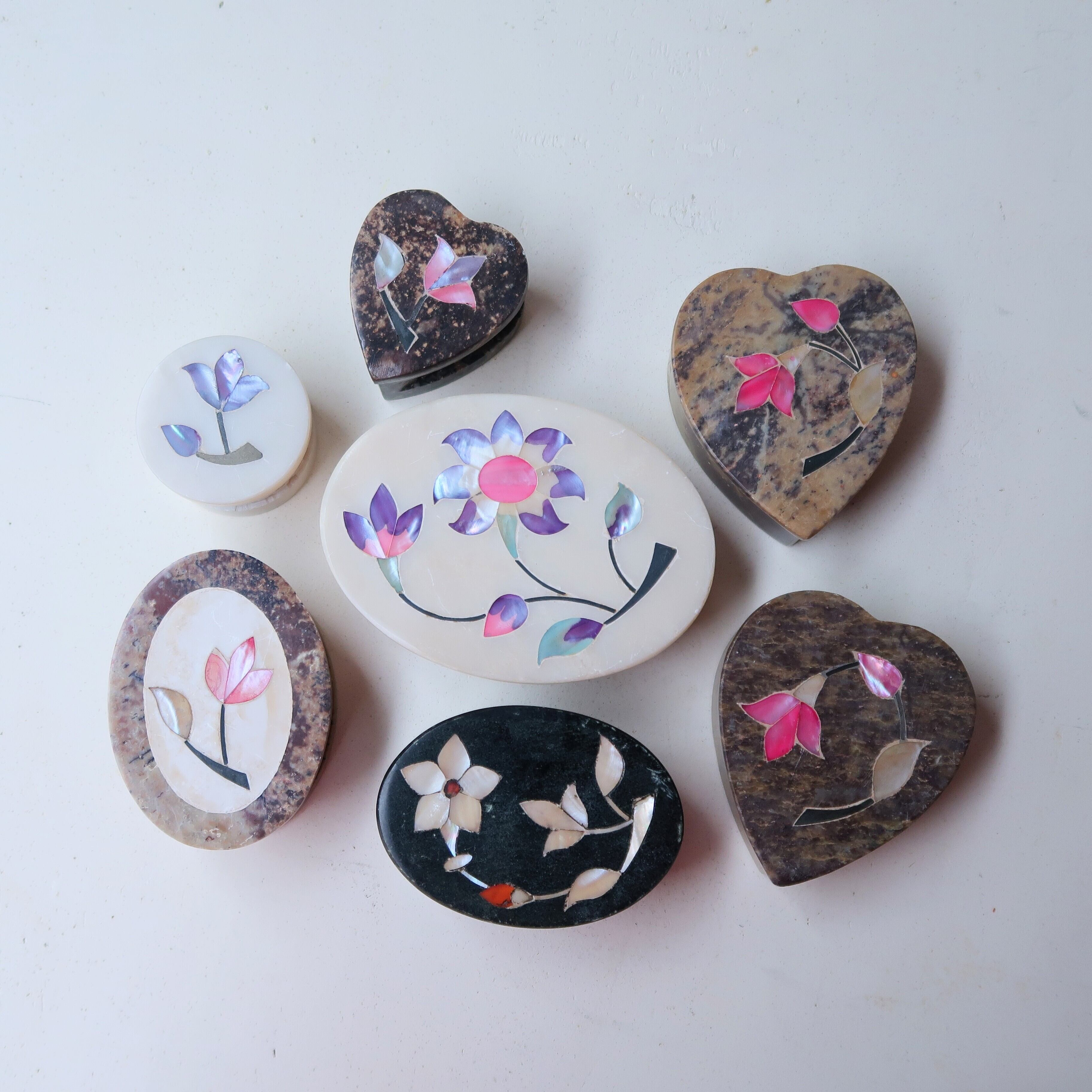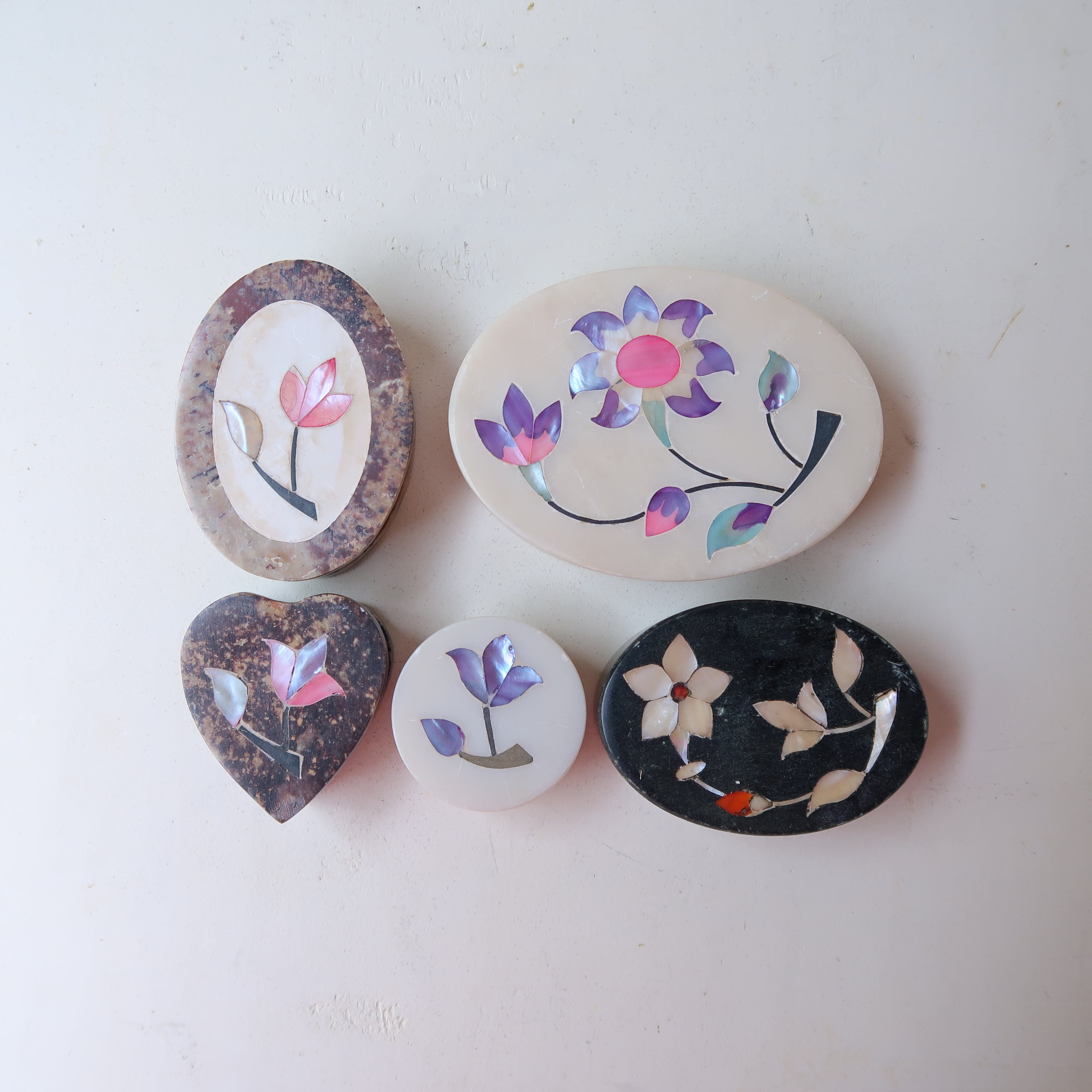 お花の象嵌がほどこされたちいさなジュエリーケース。今週はたっぷり入荷!