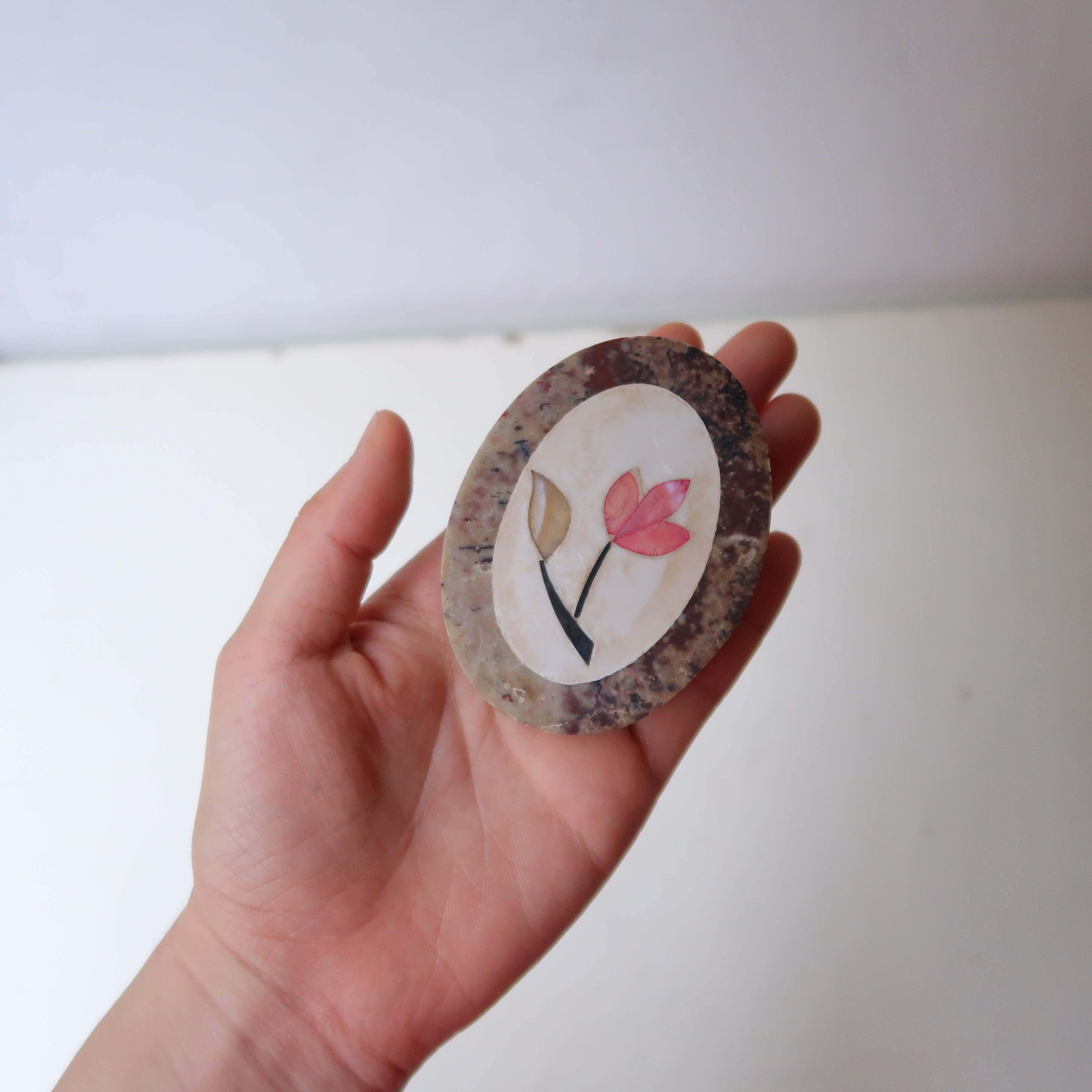 容器は石、お花は薄くスライスされた貝殻が埋め込まれているインドのアイテムです。