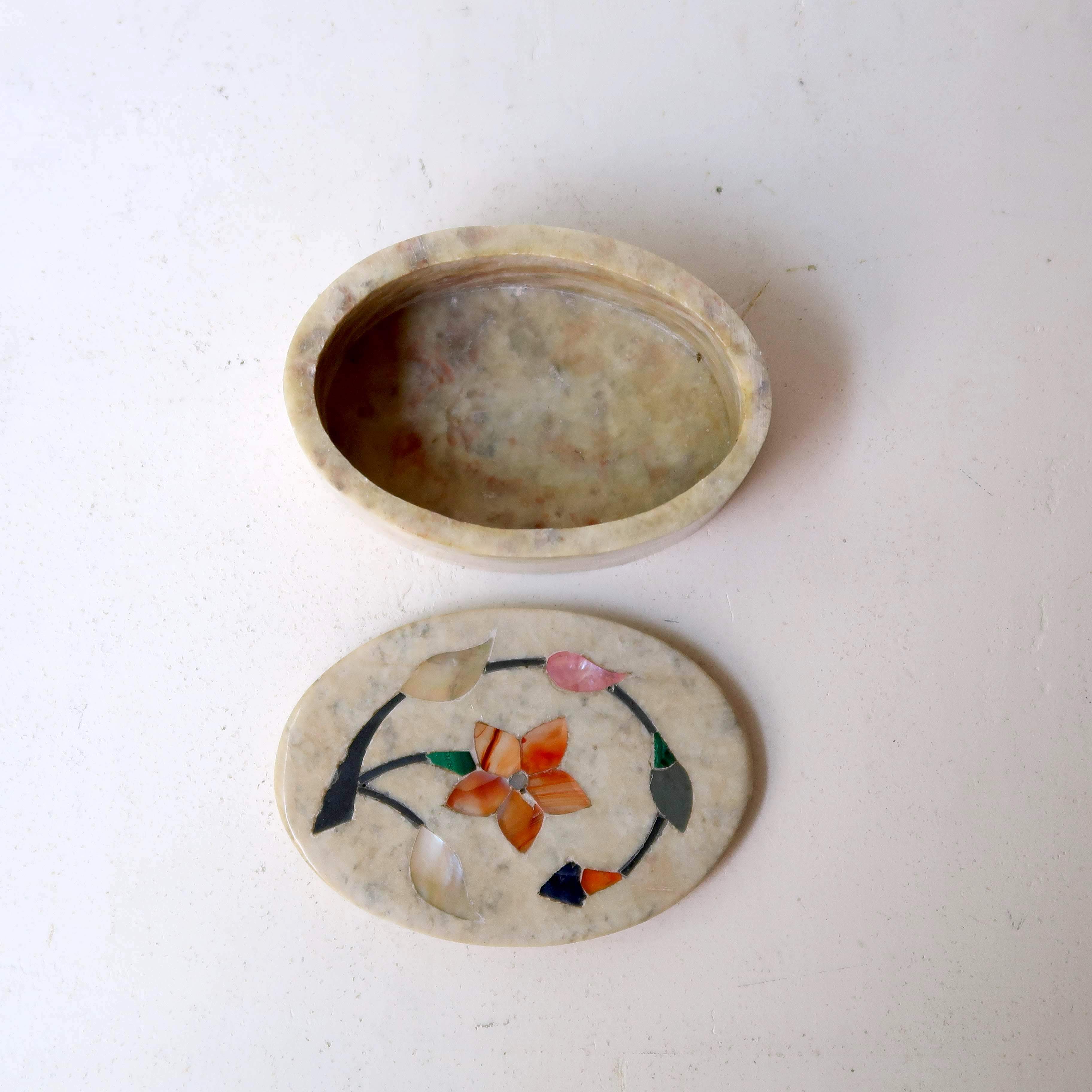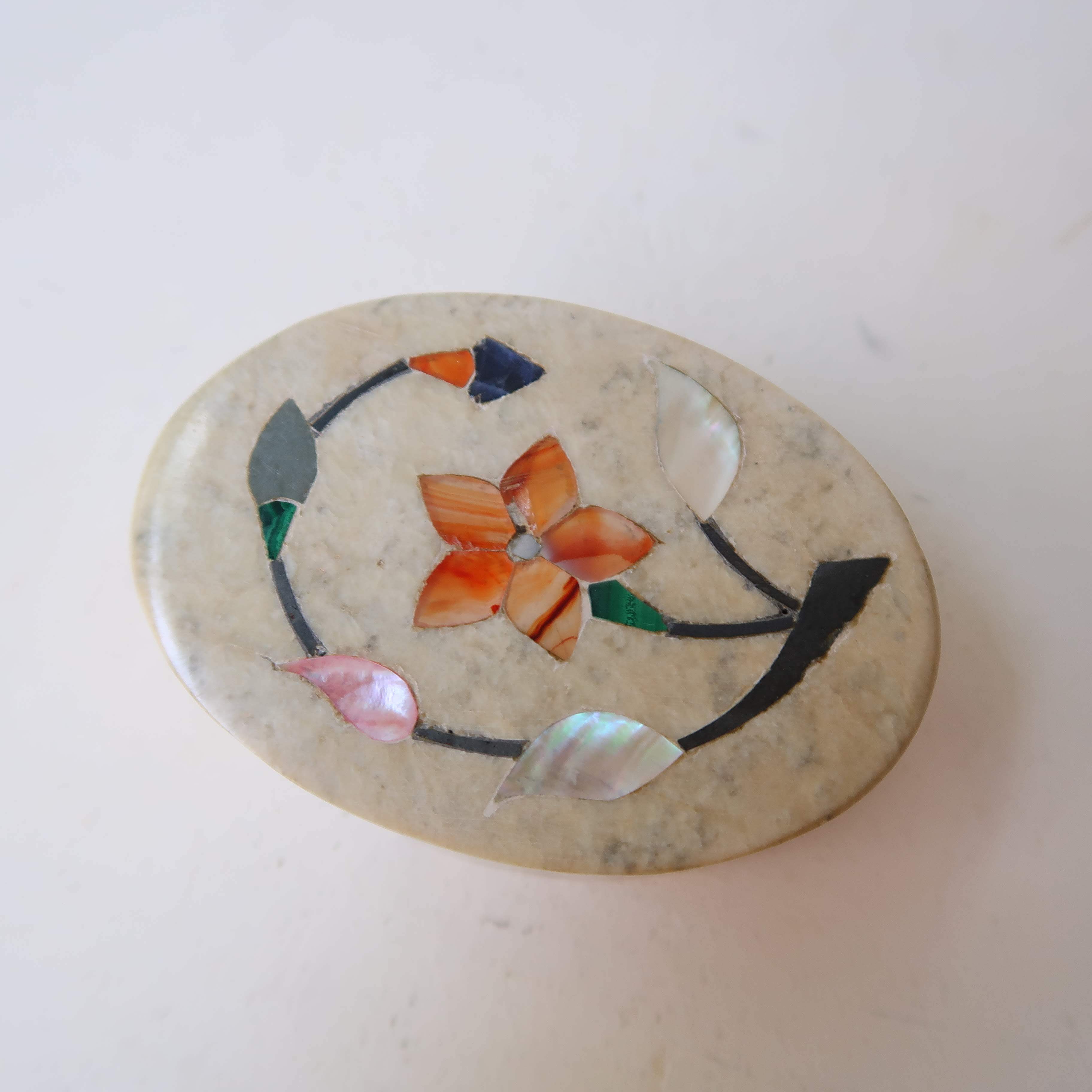 お花の象嵌がほどこされたちいさなジュエリーケース。