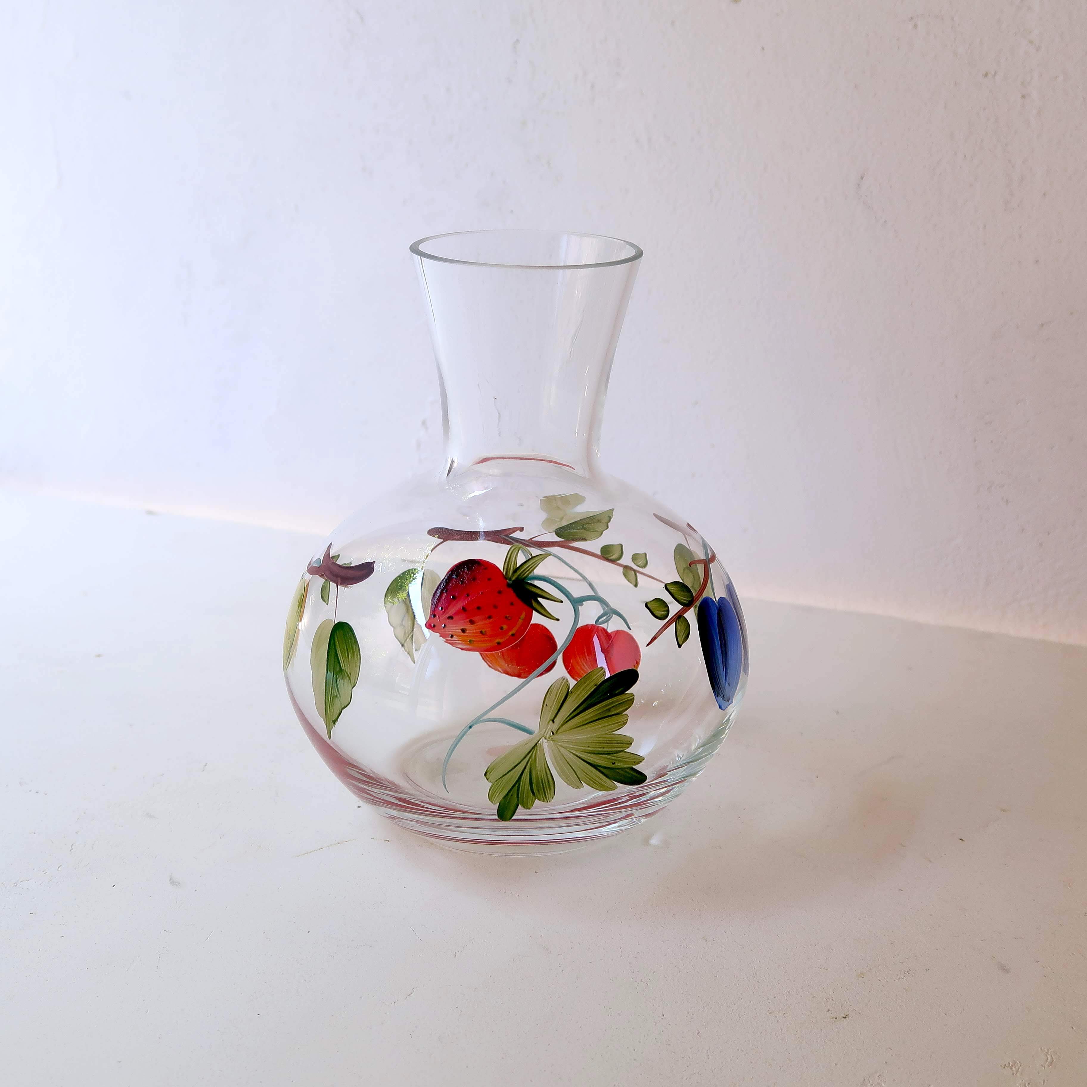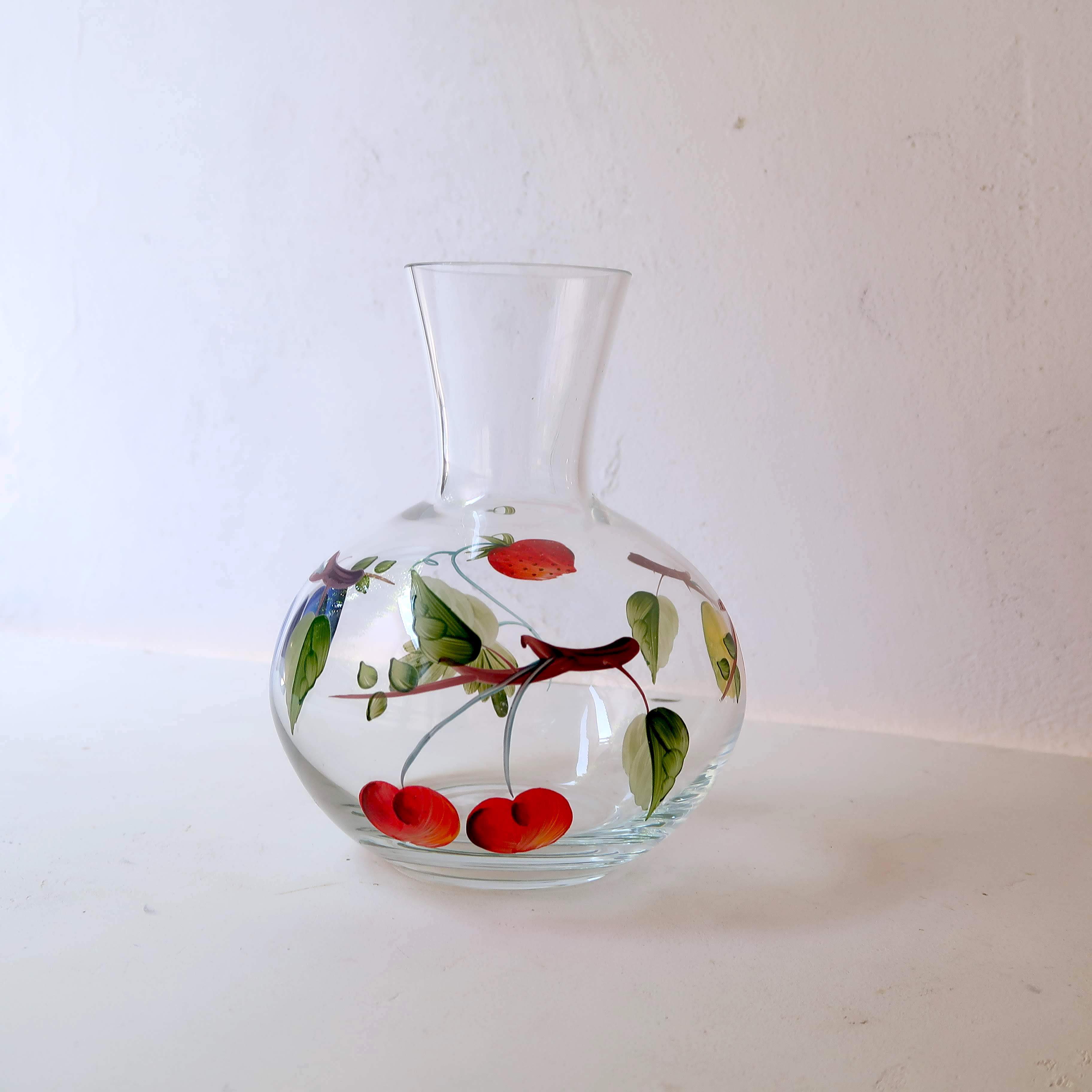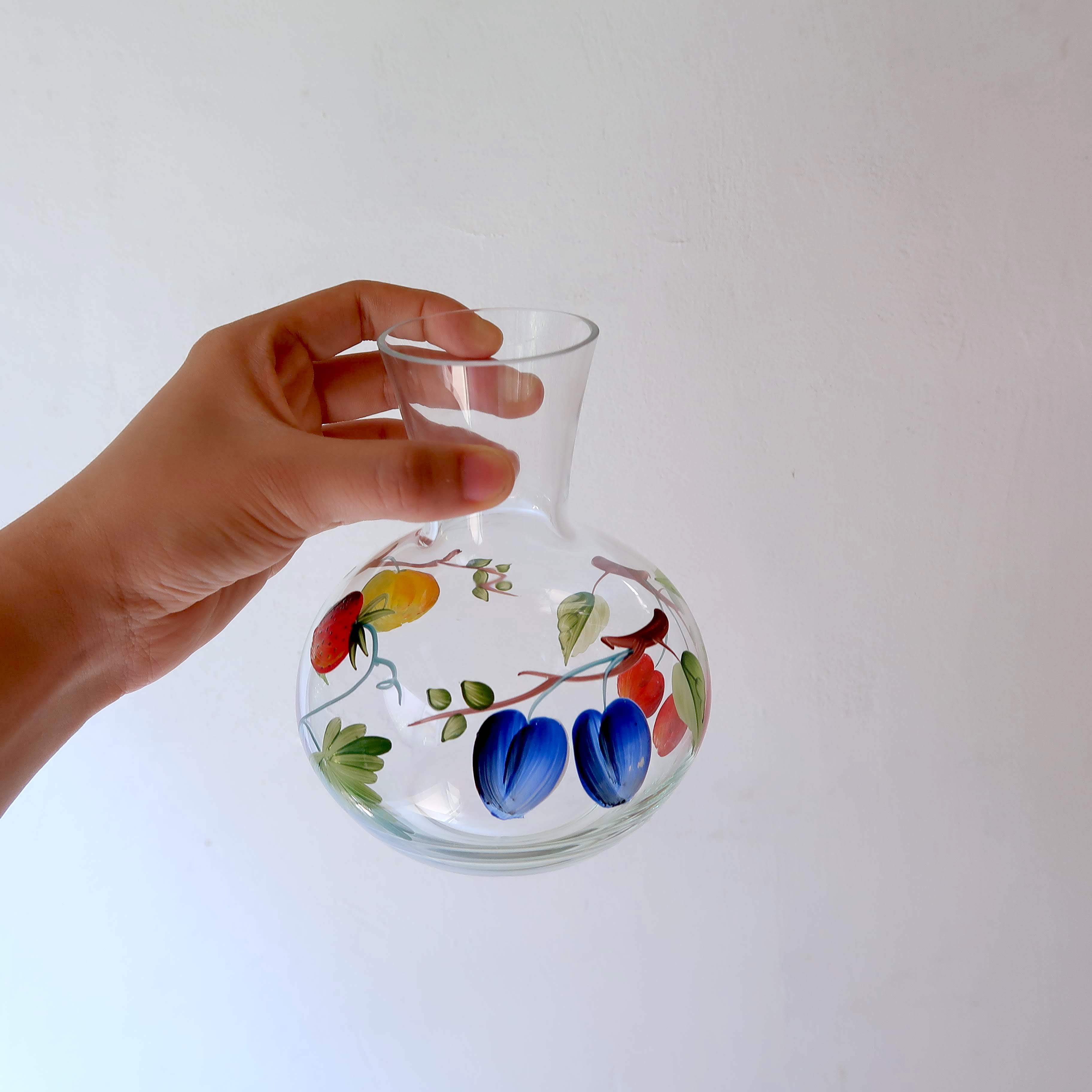 さくらんぼ、オレンジ、いちご、プラム…するするとキュートなフルーツがペイントされたガラスの花瓶。