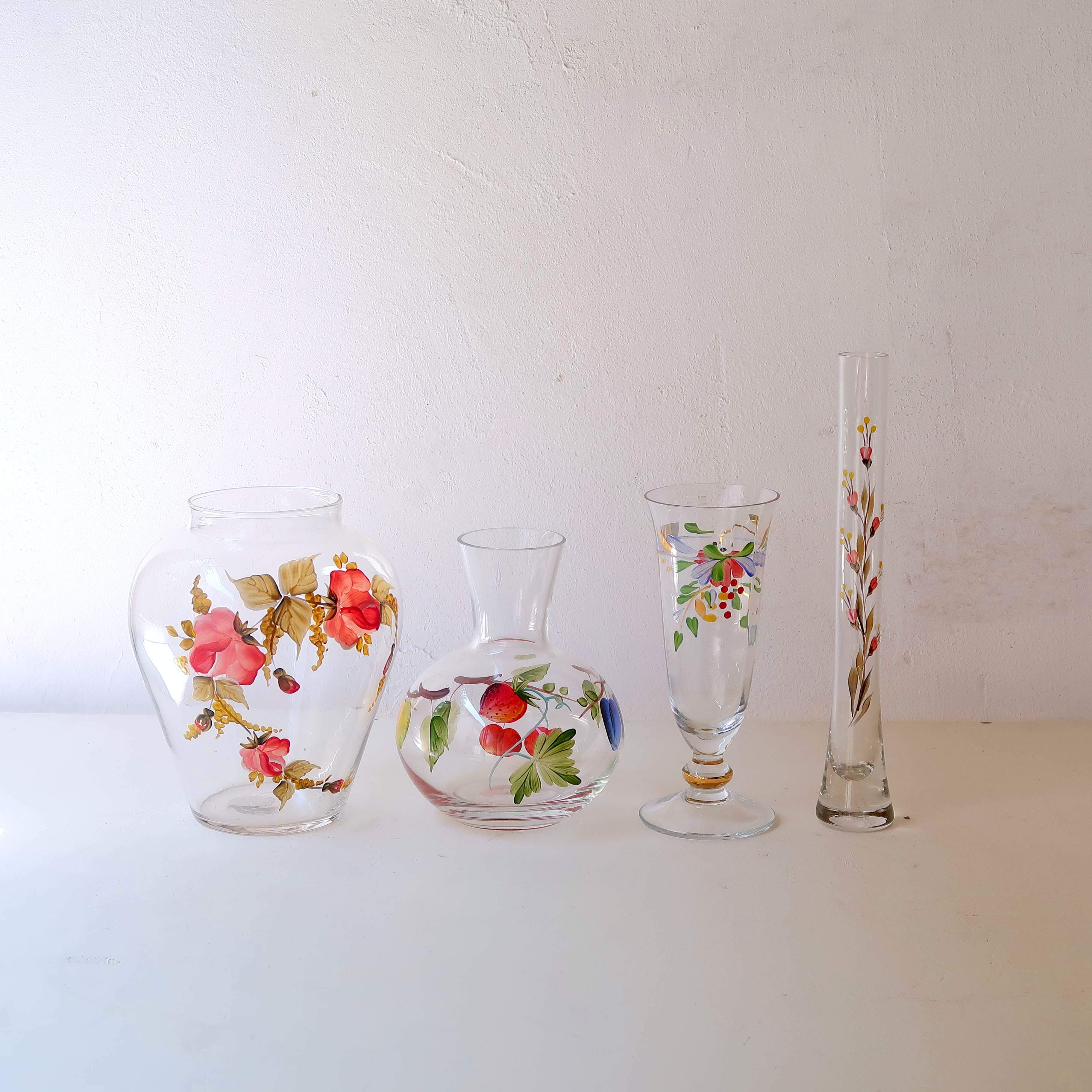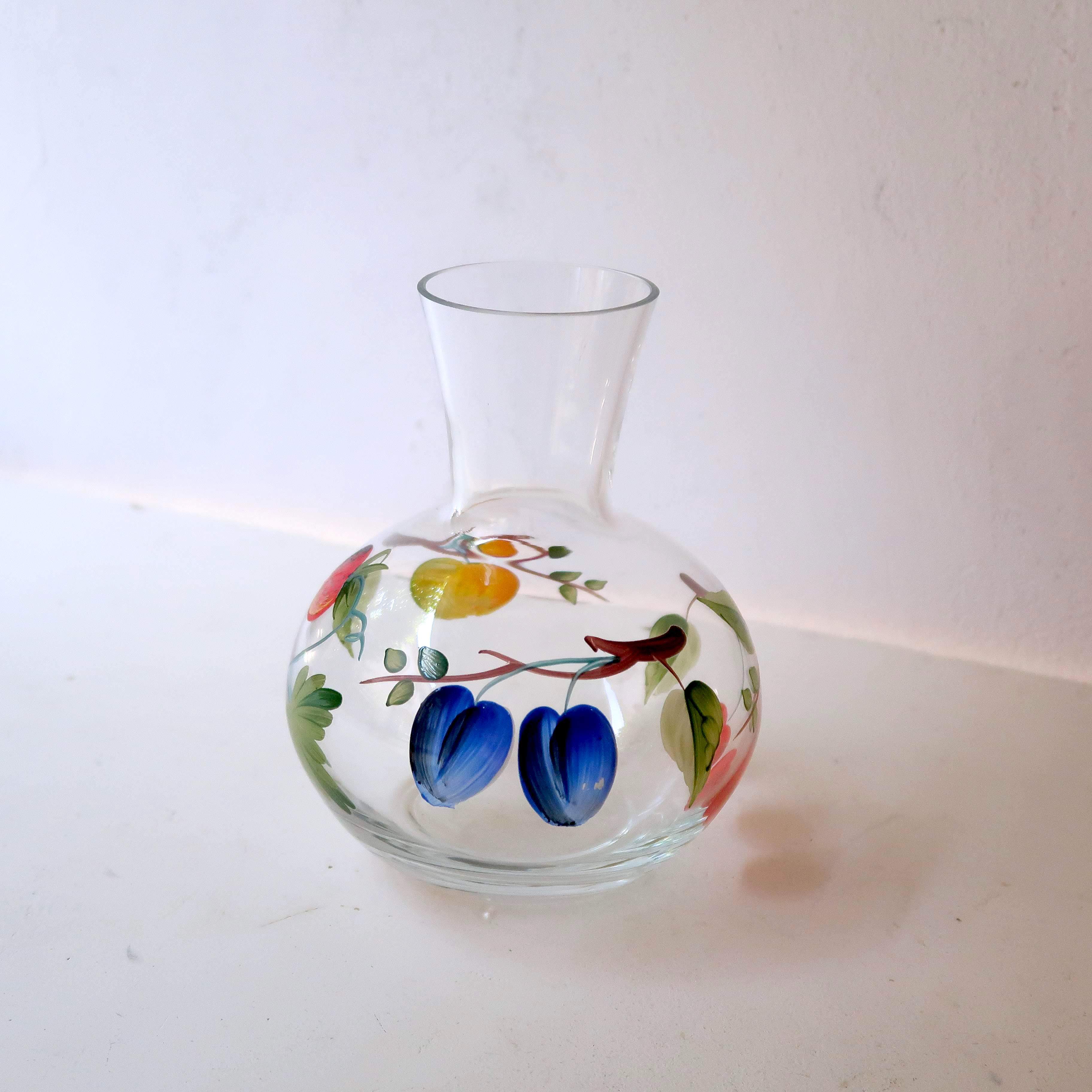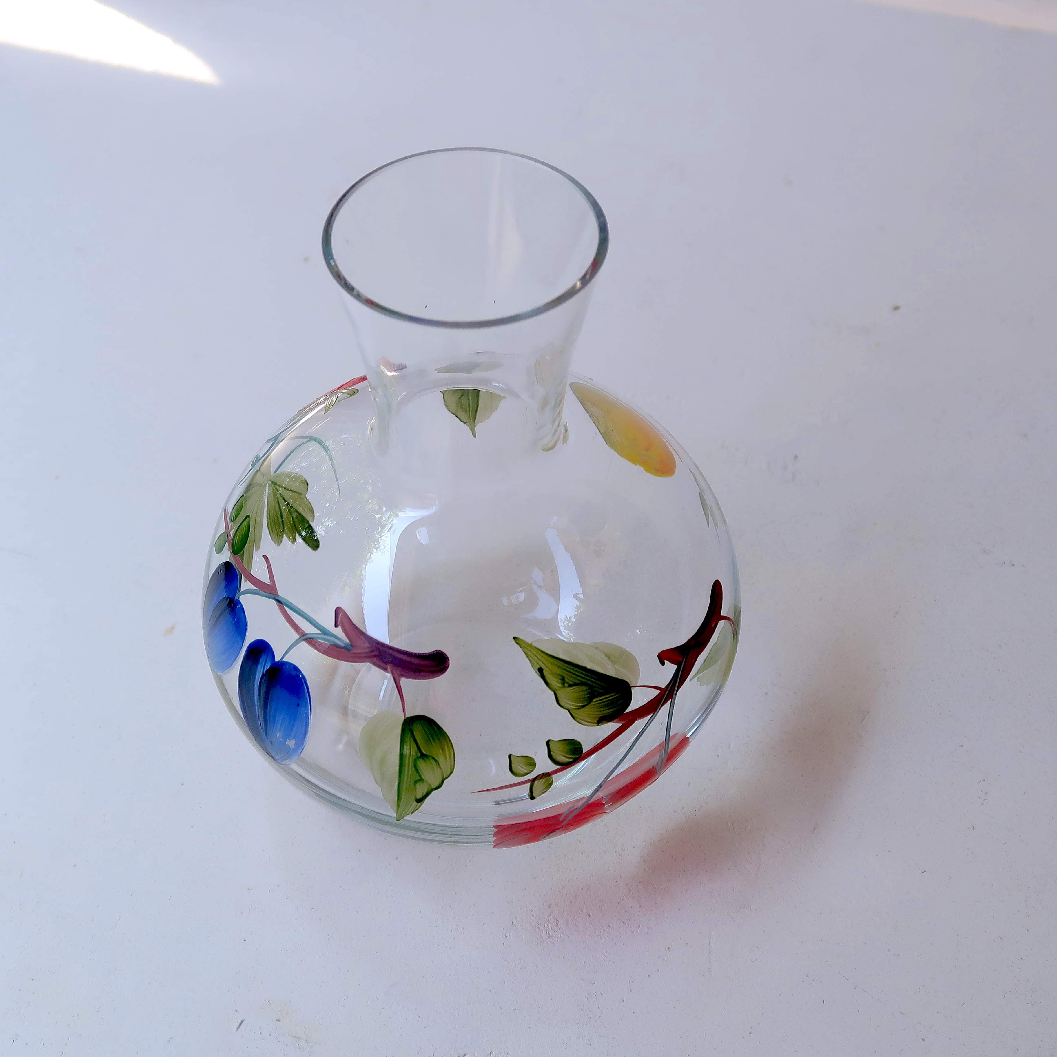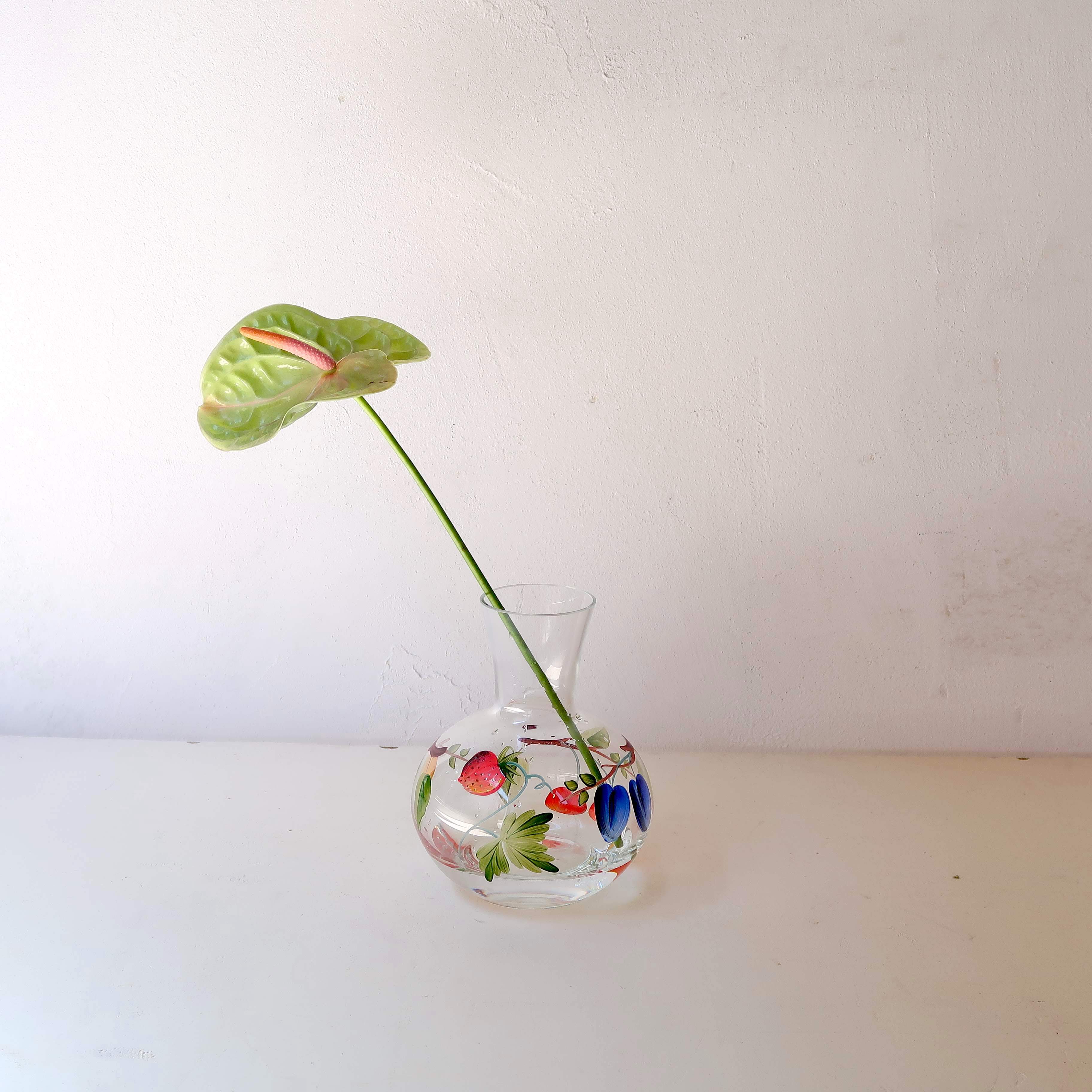 さくらんぼ、オレンジ、いちご、プラム…するするとキュートなフルーツがペイントされたガラスの花瓶。