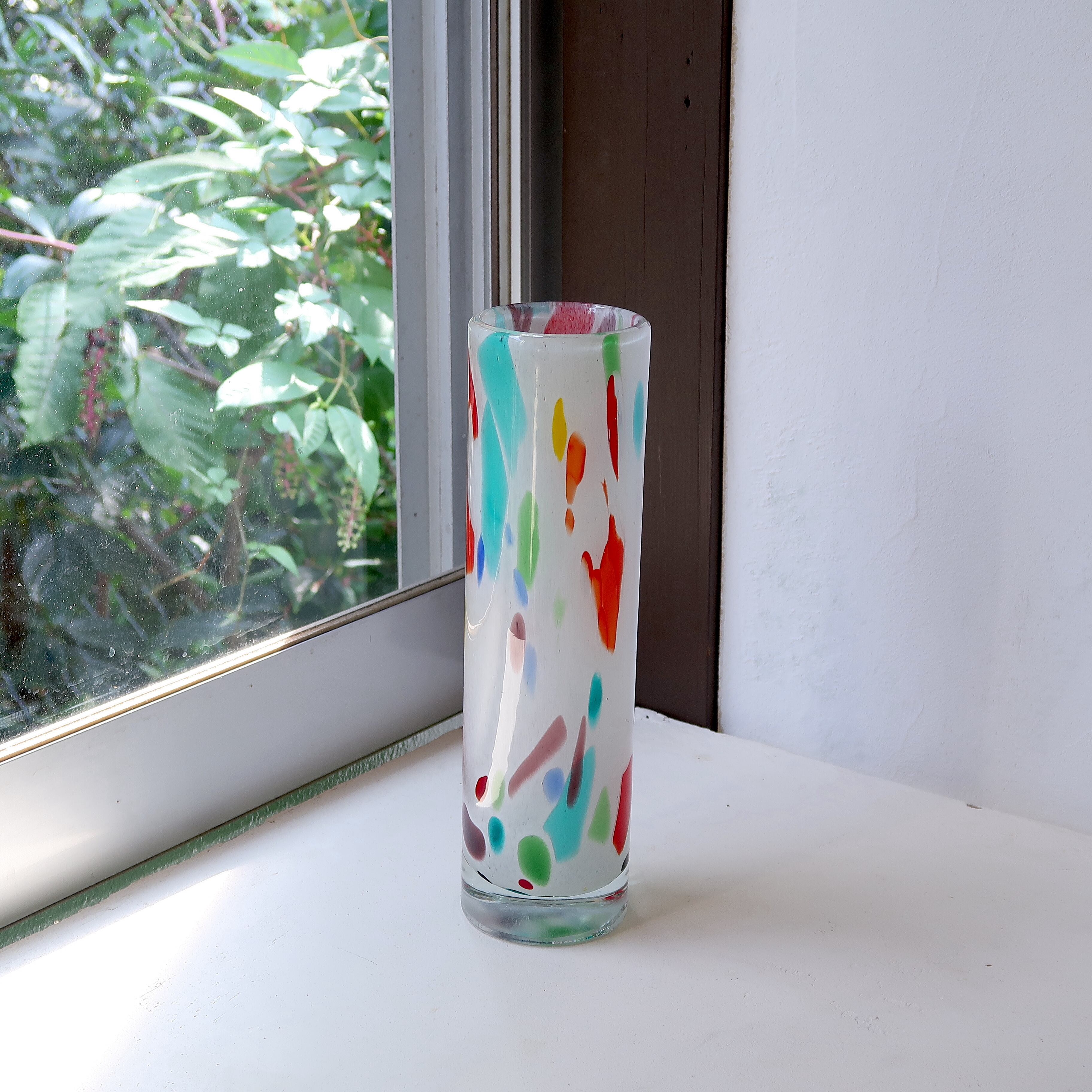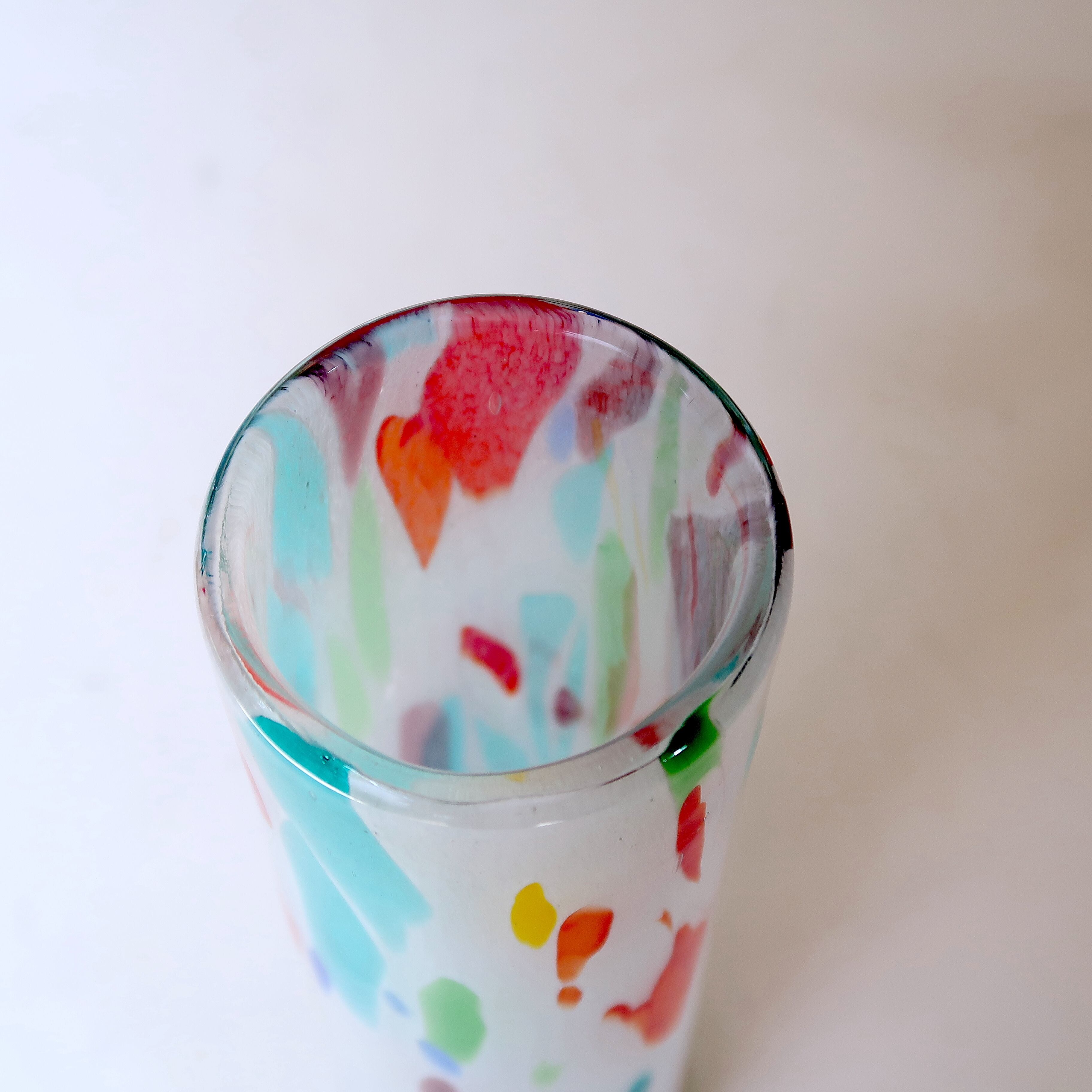全体としてはつるりとしたガラス。円筒型ですっきりとしたフォルムで、一輪挿しとしてもかわいいです。