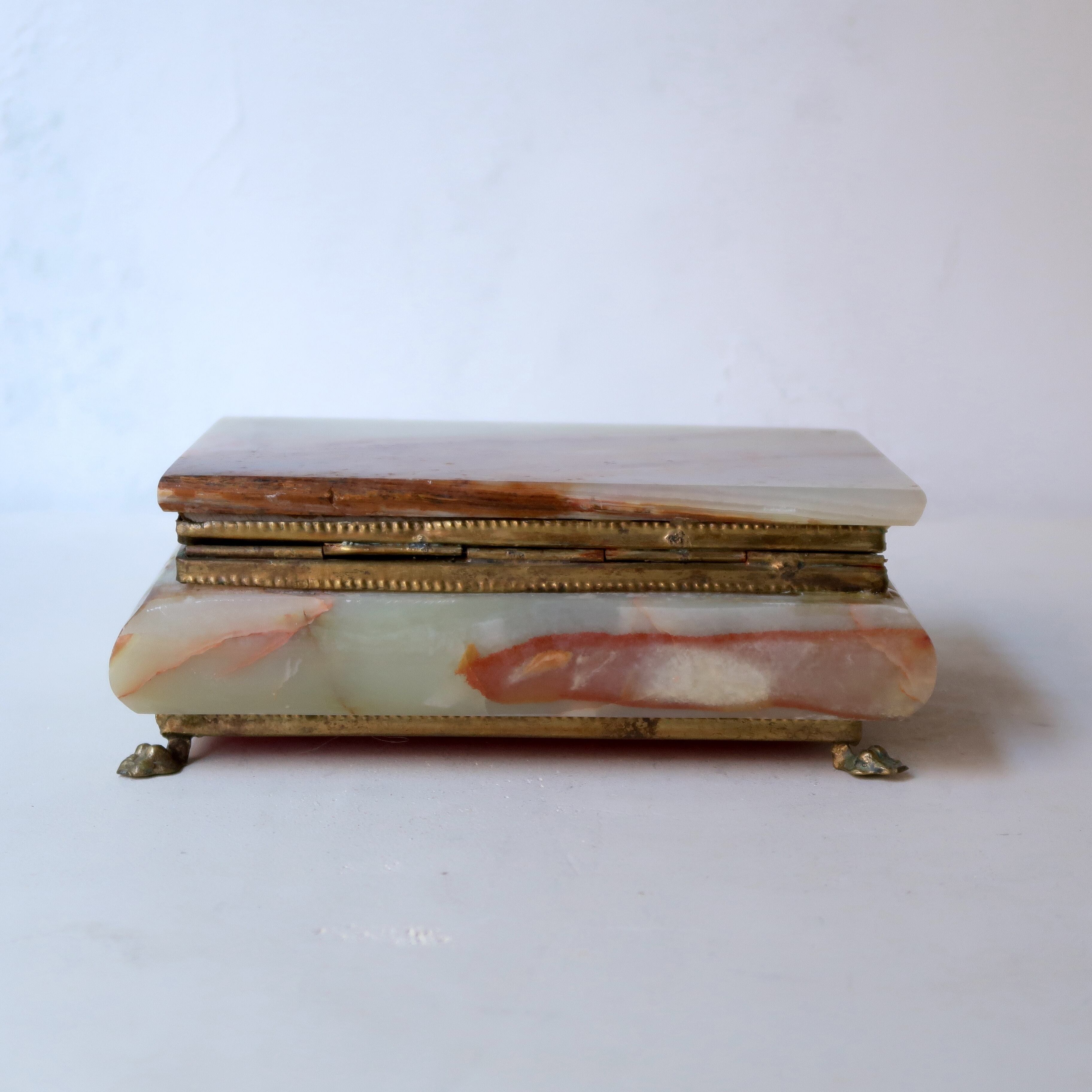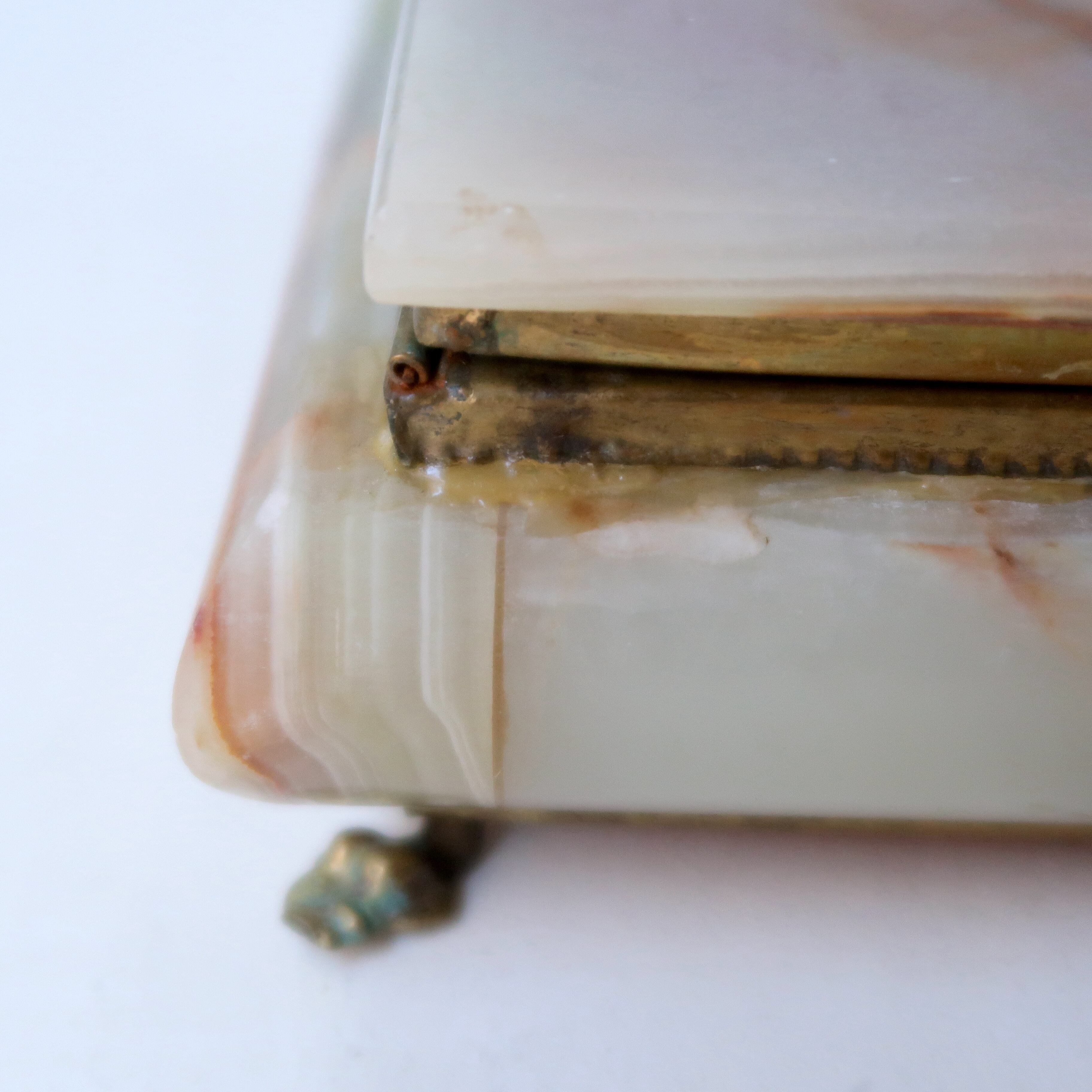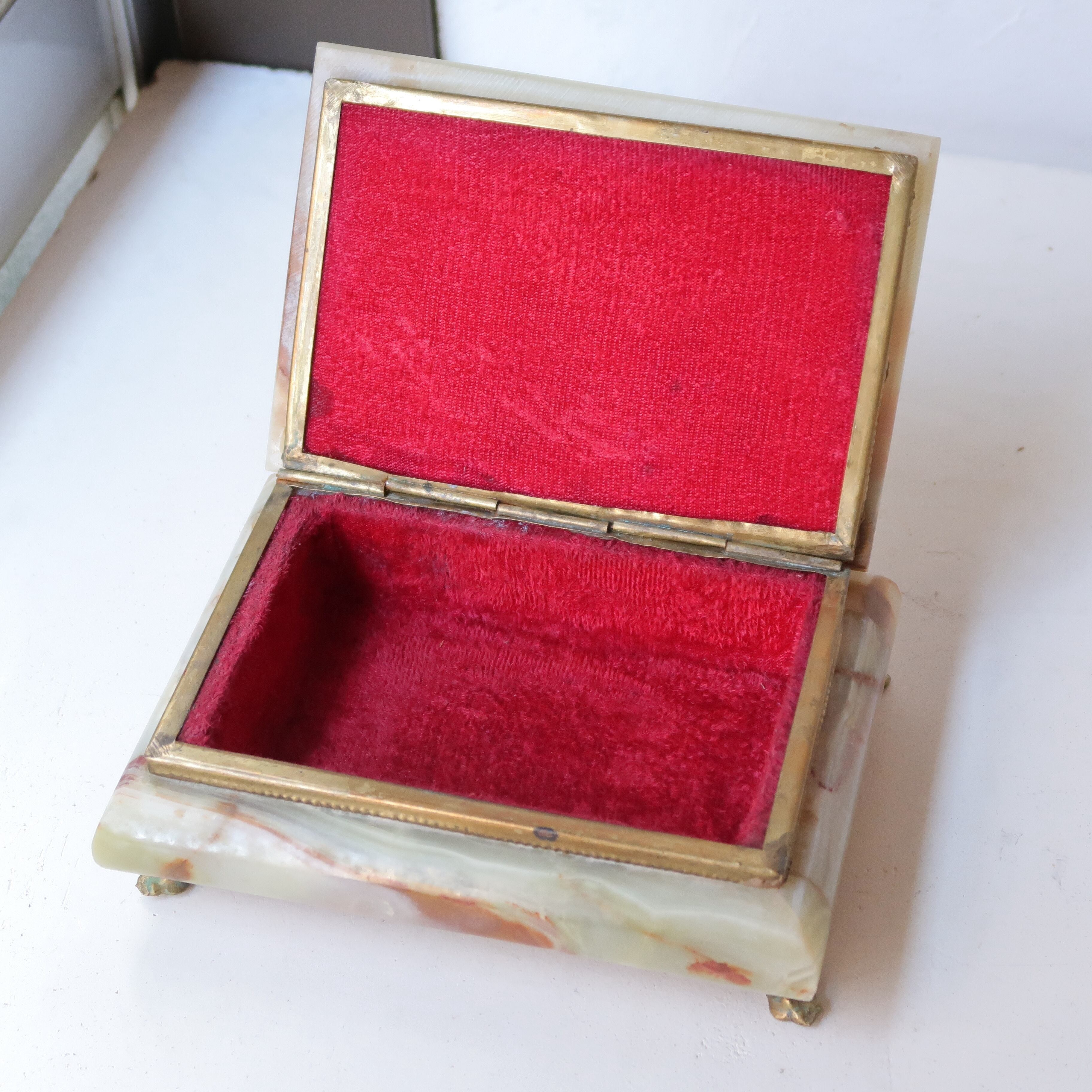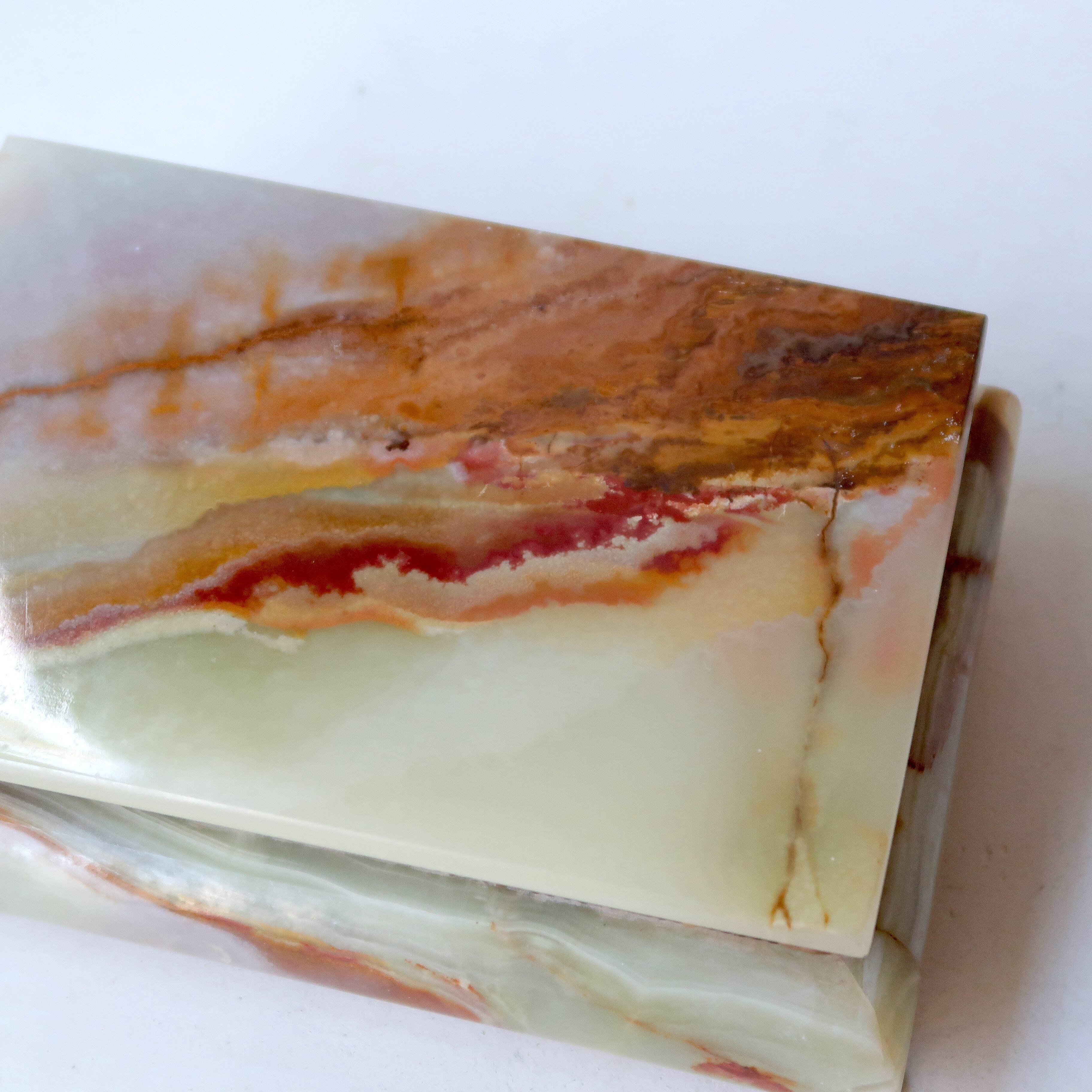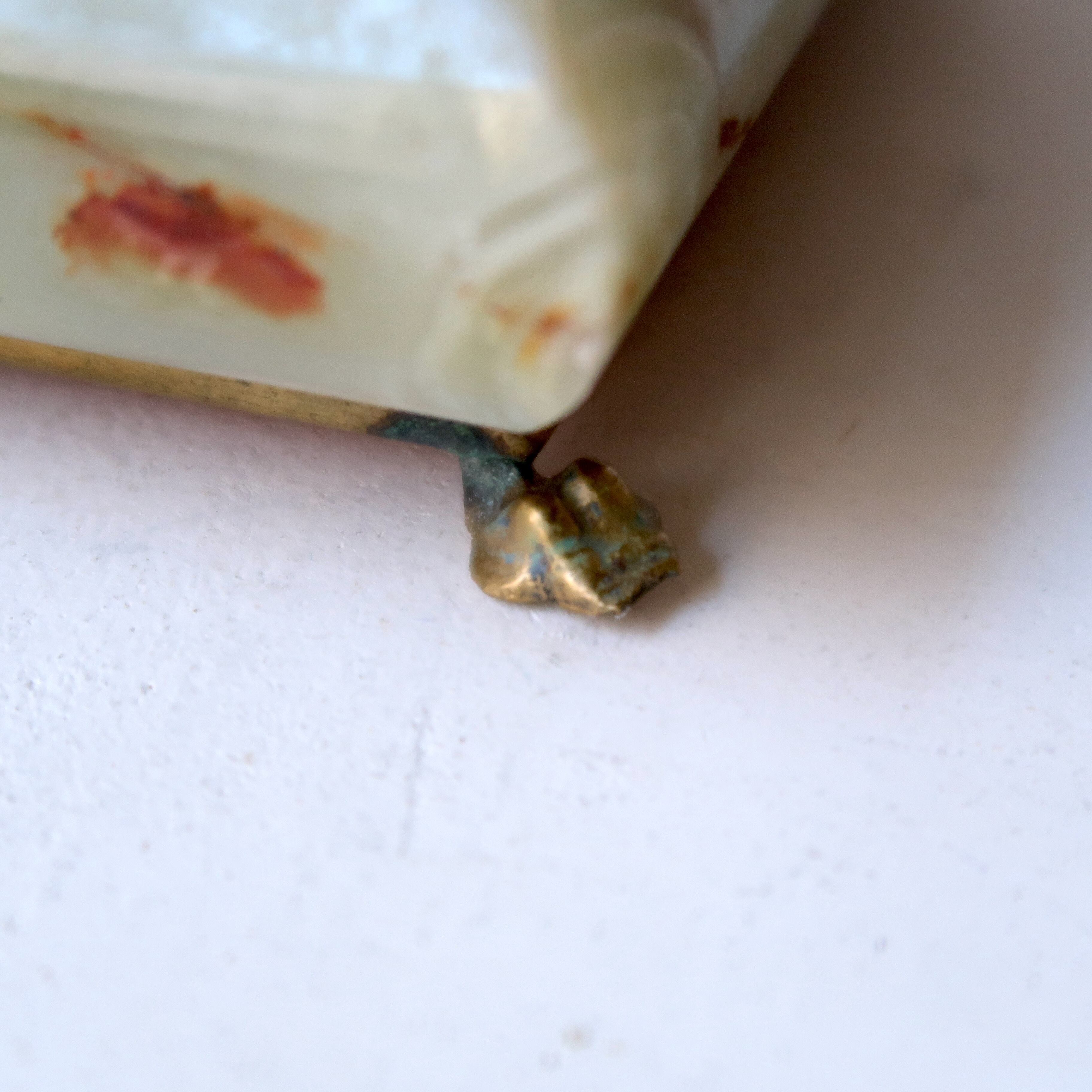 ブラウンとグリーンのオニキスは深みのある秋らしい色合い。厚みも重みもあり、だいじにだいじに、使いたい。内側の布地はレトロ感あふれる赤色です。