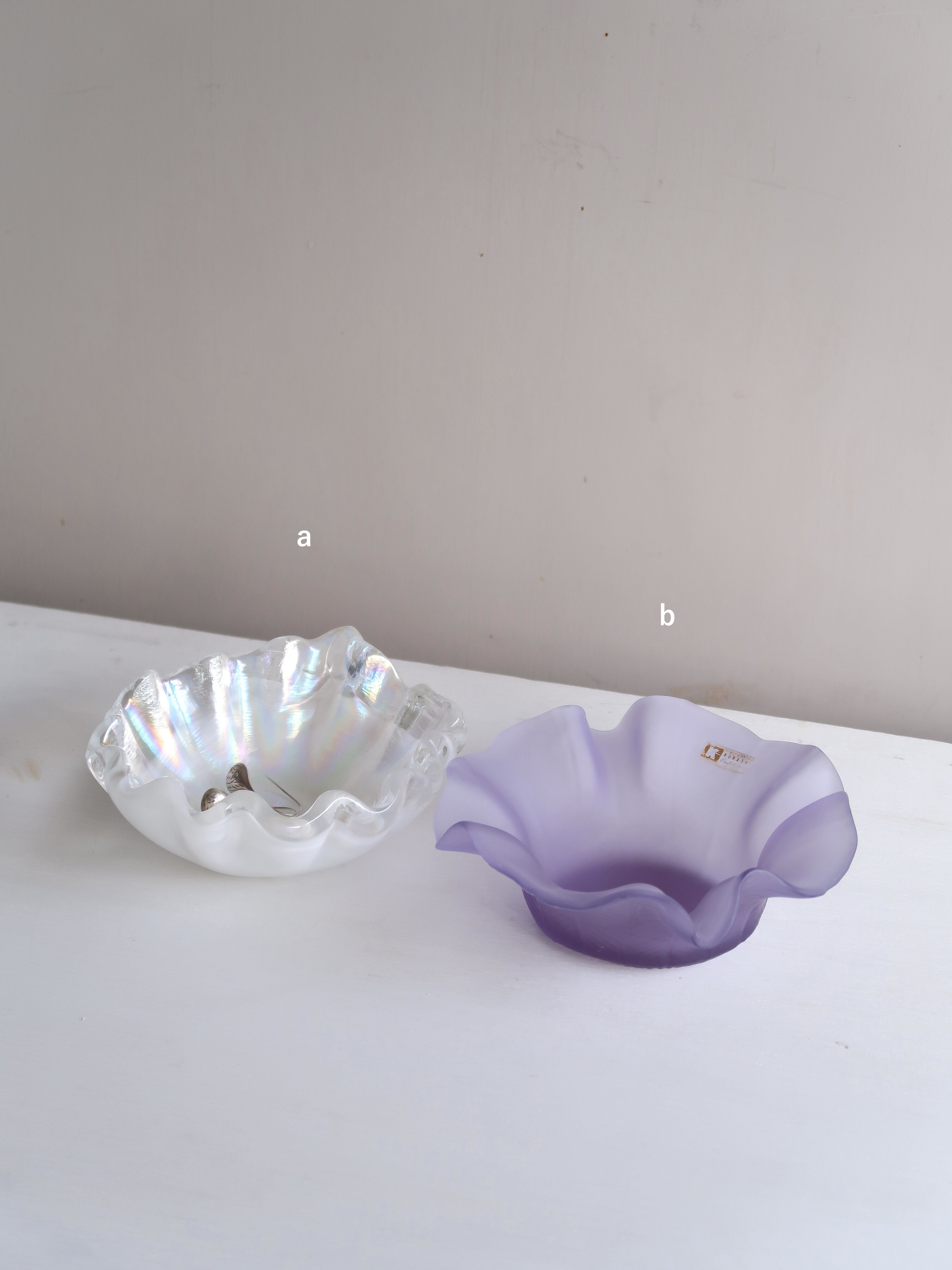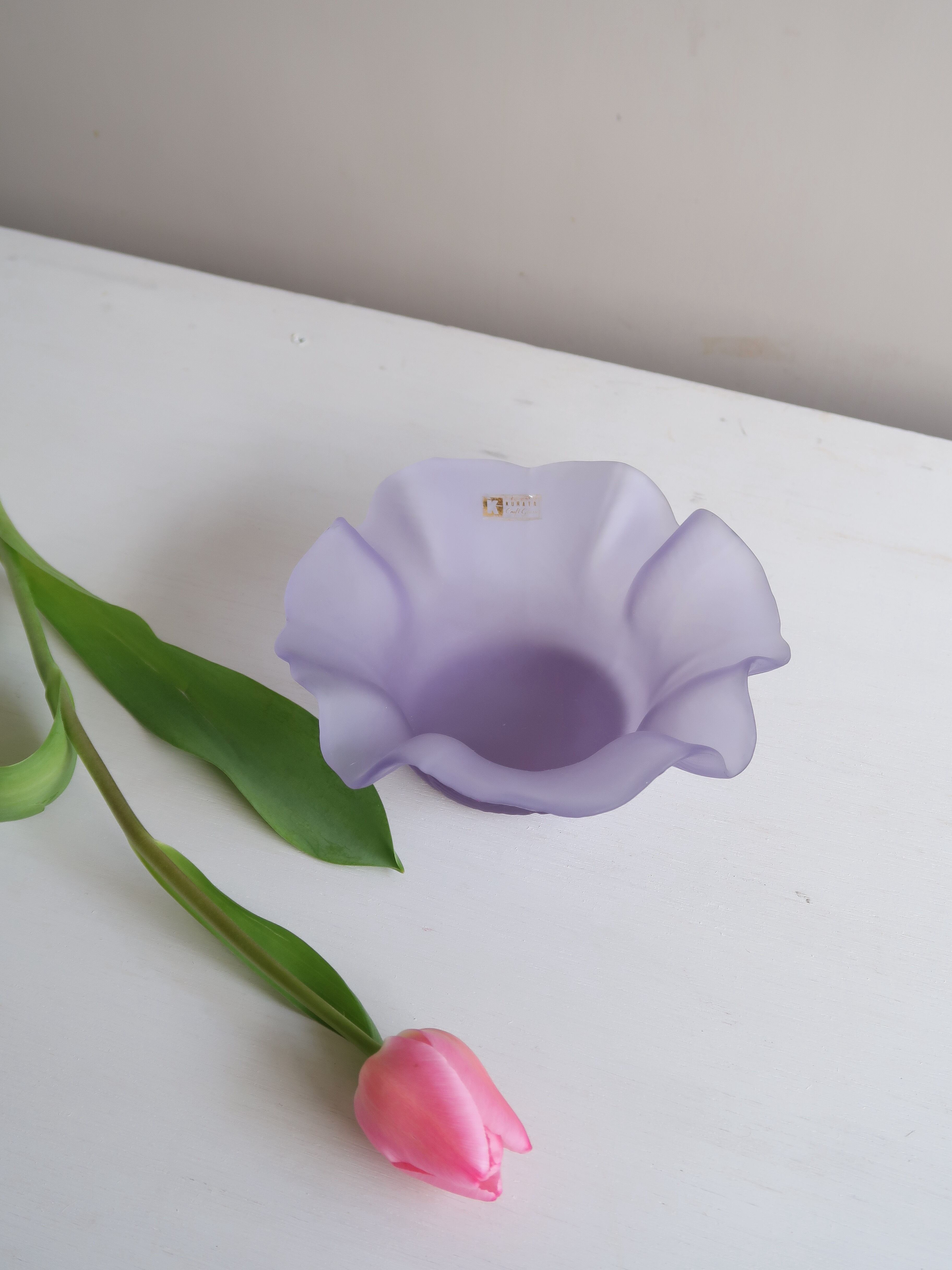 貝殻のようなひらひらとしたフォルムに、うるうると光るオーロラ感。ぽってりとして安定感があります。